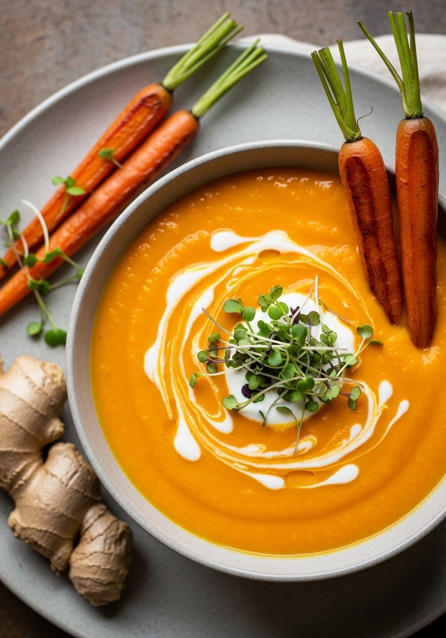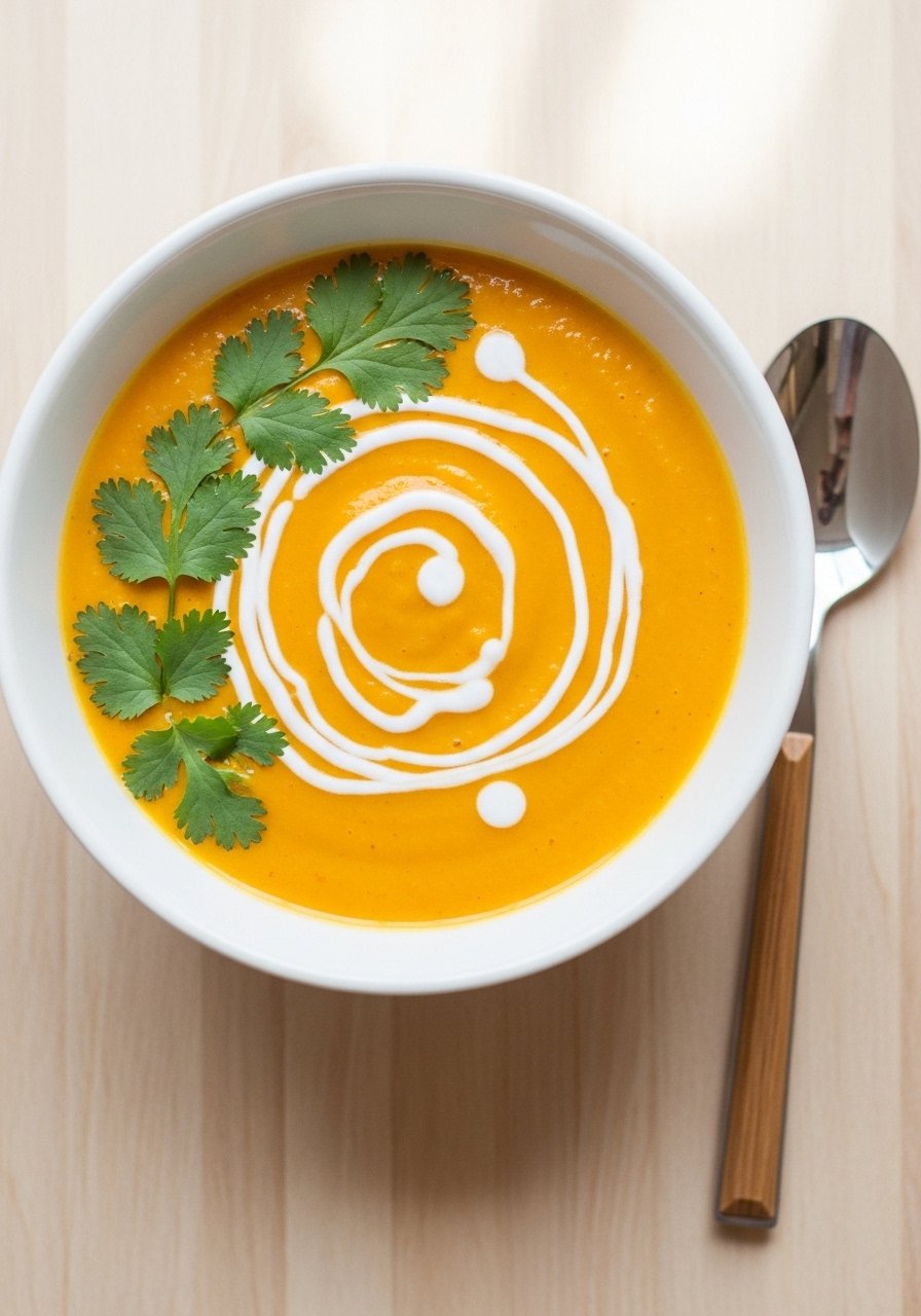 - Blend and finish: Blend soup until smooth, stir in coconut milk, warm through, and season. Garnish and serve.
