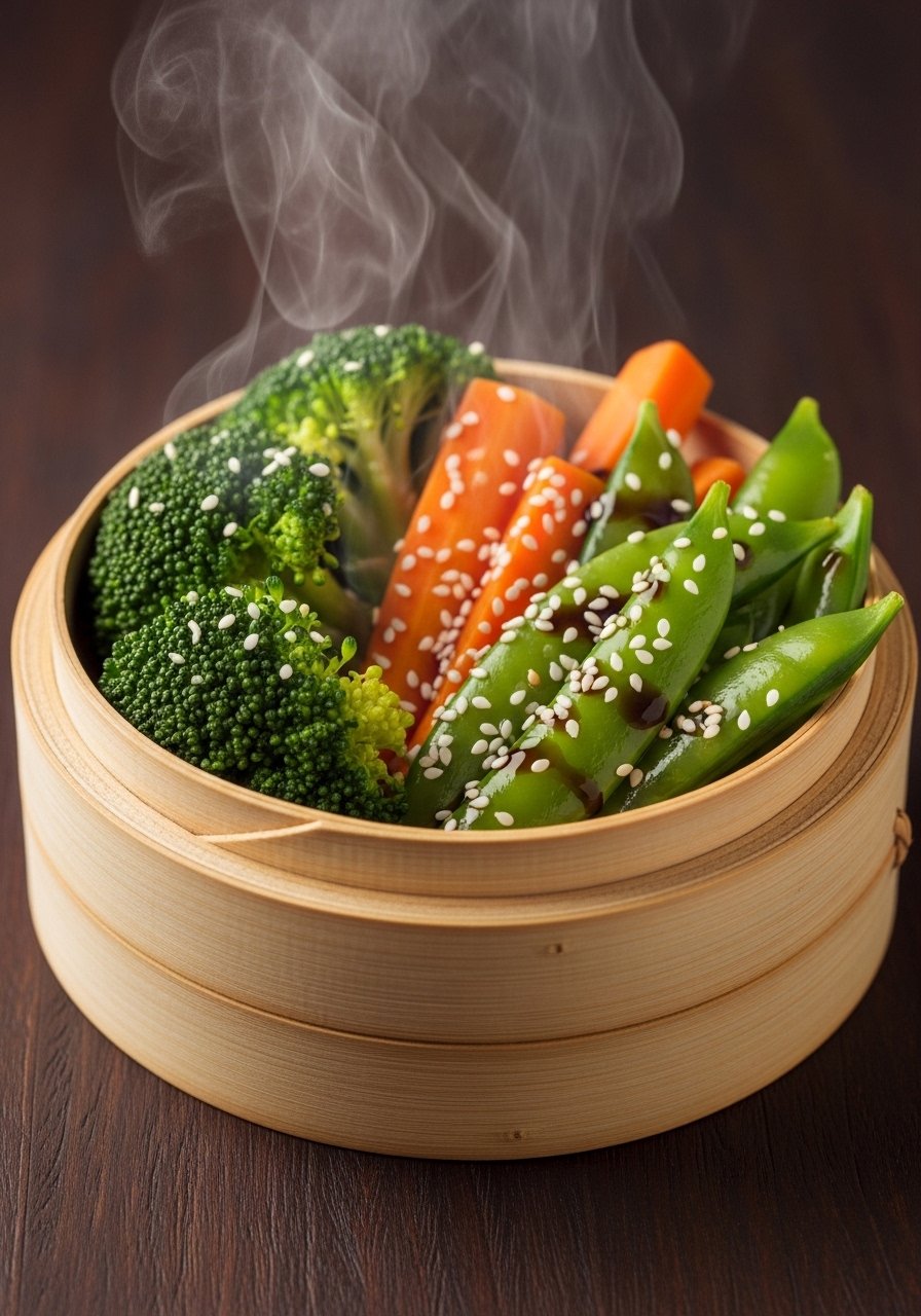 - Toss and serve: Toss steamed vegetables with sauce and sprinkle sesame seeds. Serve warm.