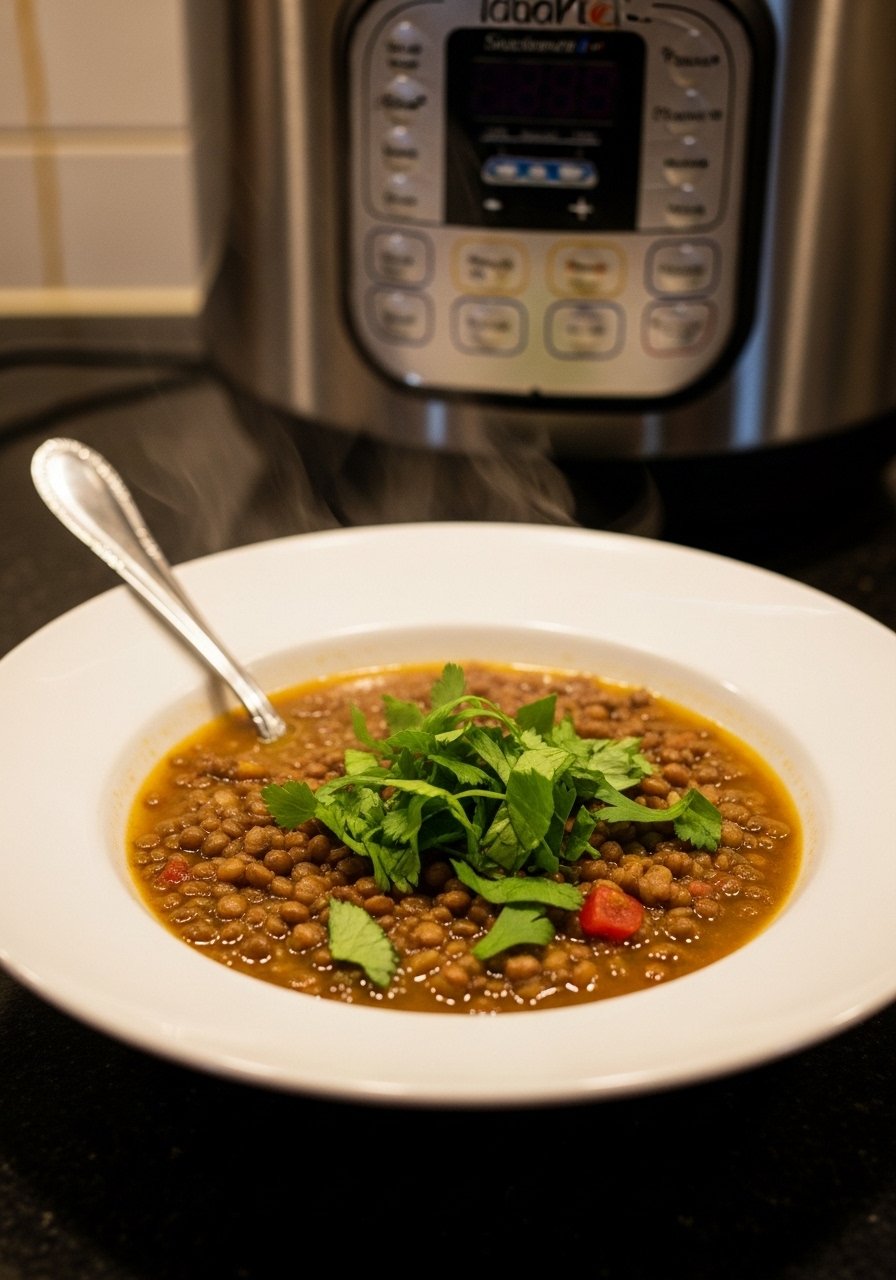 - Add lentils and broth: Stir in lentils, broth, and cumin. Seal lid and set to high pressure for 15 minutes.