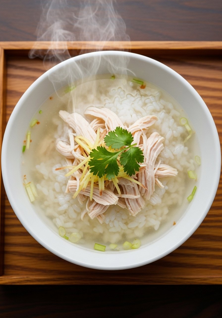 A light, gently flavored rice soup with shredded chicken and ginger. It’s very easy to digest and perfect when you need rest and warmth.