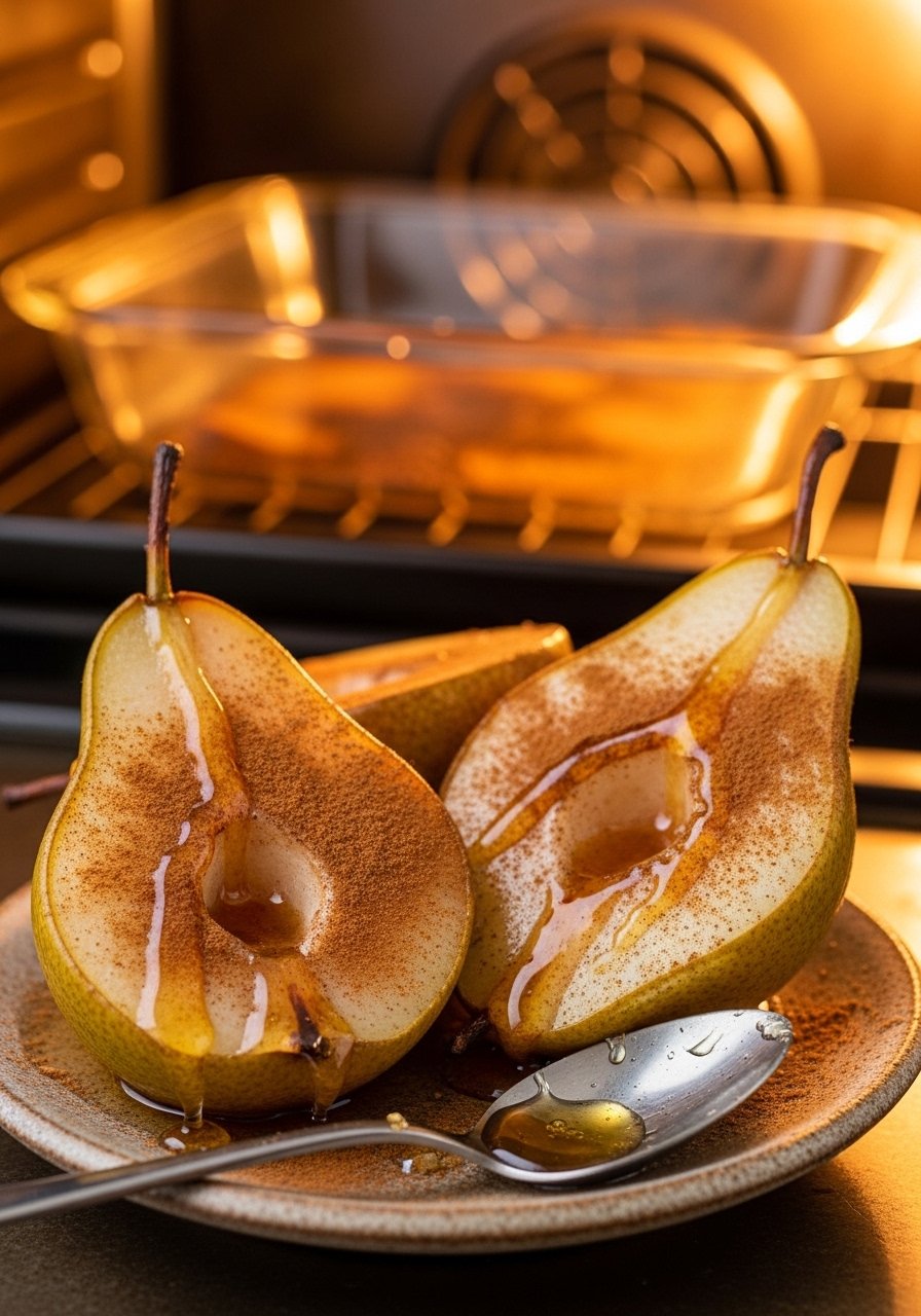 - Add flavor and bake: Sprinkle with cinnamon, drizzle honey and water over pears, and bake 20–25 minutes until tender.