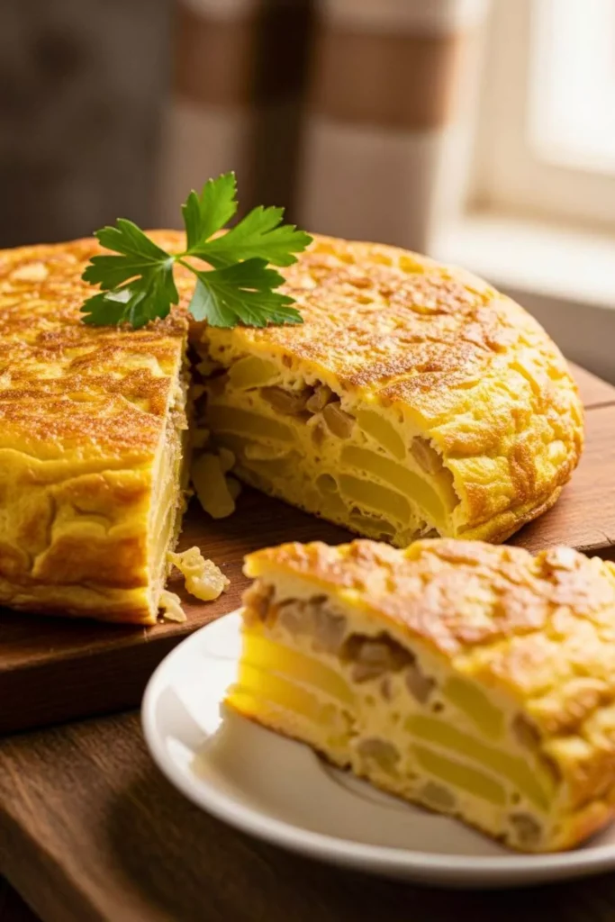 A Spanish tortilla is a thick omelet packed with potatoes and onions. It’s golden, tender inside, and hearty enough to serve as a full dinner. It can be eaten warm or at room temperature, making it a flexible option.