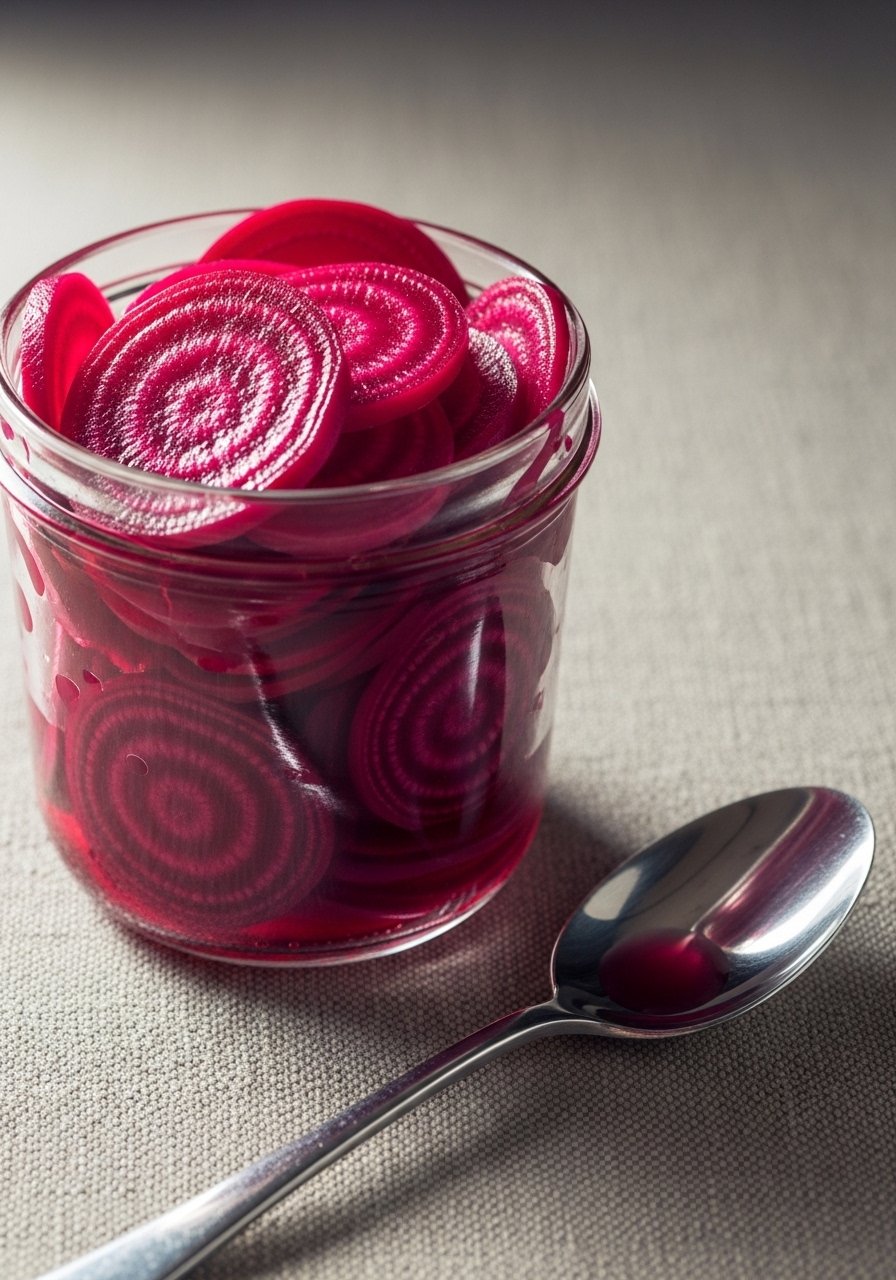 Sliced beets become bright, tangy, and mildly sweet. They’re ready faster than cooked pickles and retain a firm texture.