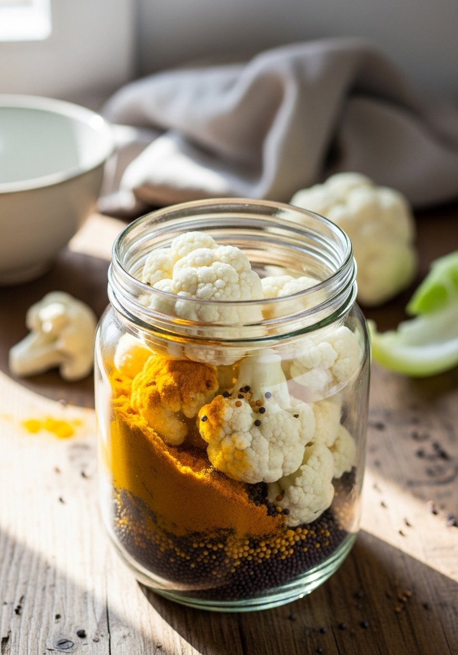 - Pack Florets — Place cauliflower and spices in jar.