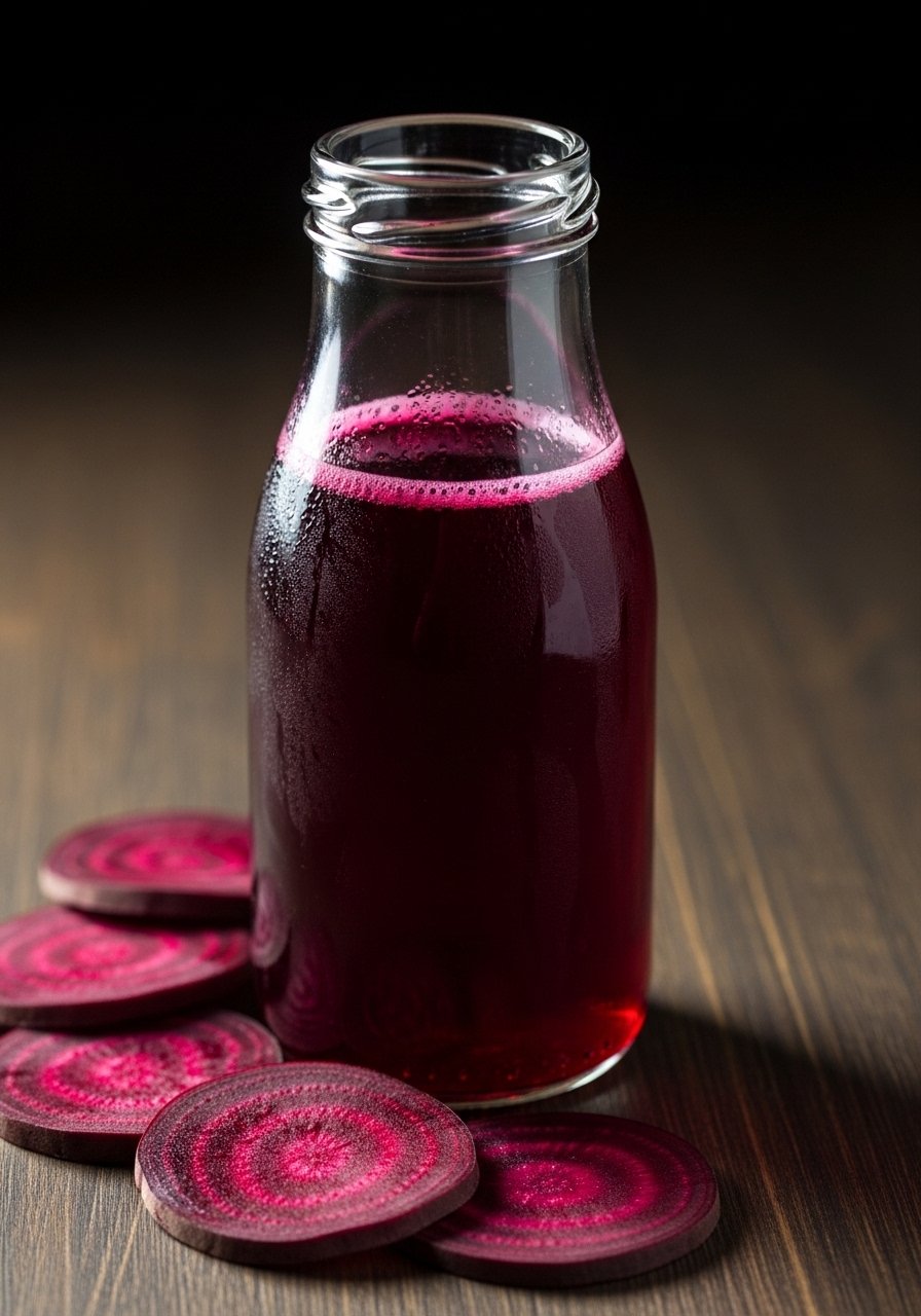 Earthy, tangy, and fizzy, beet kvass is a fermented vegetable tonic. It’s vibrant in color and gentle on the palate—a gut-friendly daily sip.