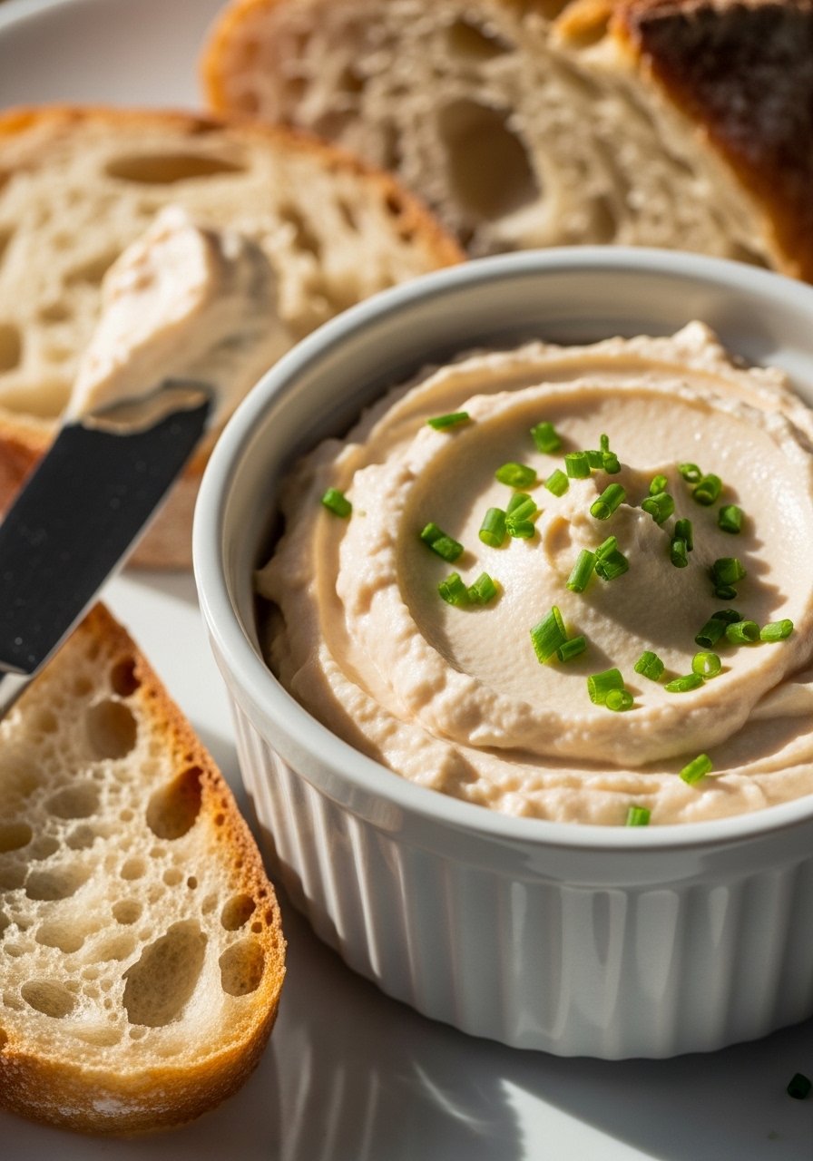 This dairy-free cultured cheese is tangy and spreadable. It uses probiotics or rejuvelac for a yogurt-like fermentation.