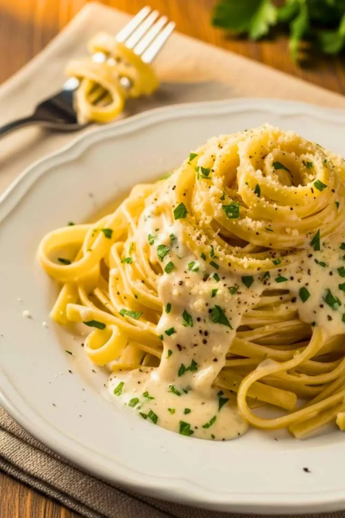 It is made with wide fettuccine noodles tossed in a smooth sauce of butter, cream, and Parmesan cheese. This dish is loved around the world because it is simple, quick to prepare, and incredibly satisfying.