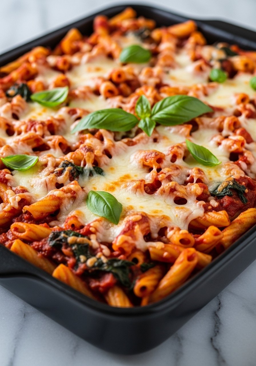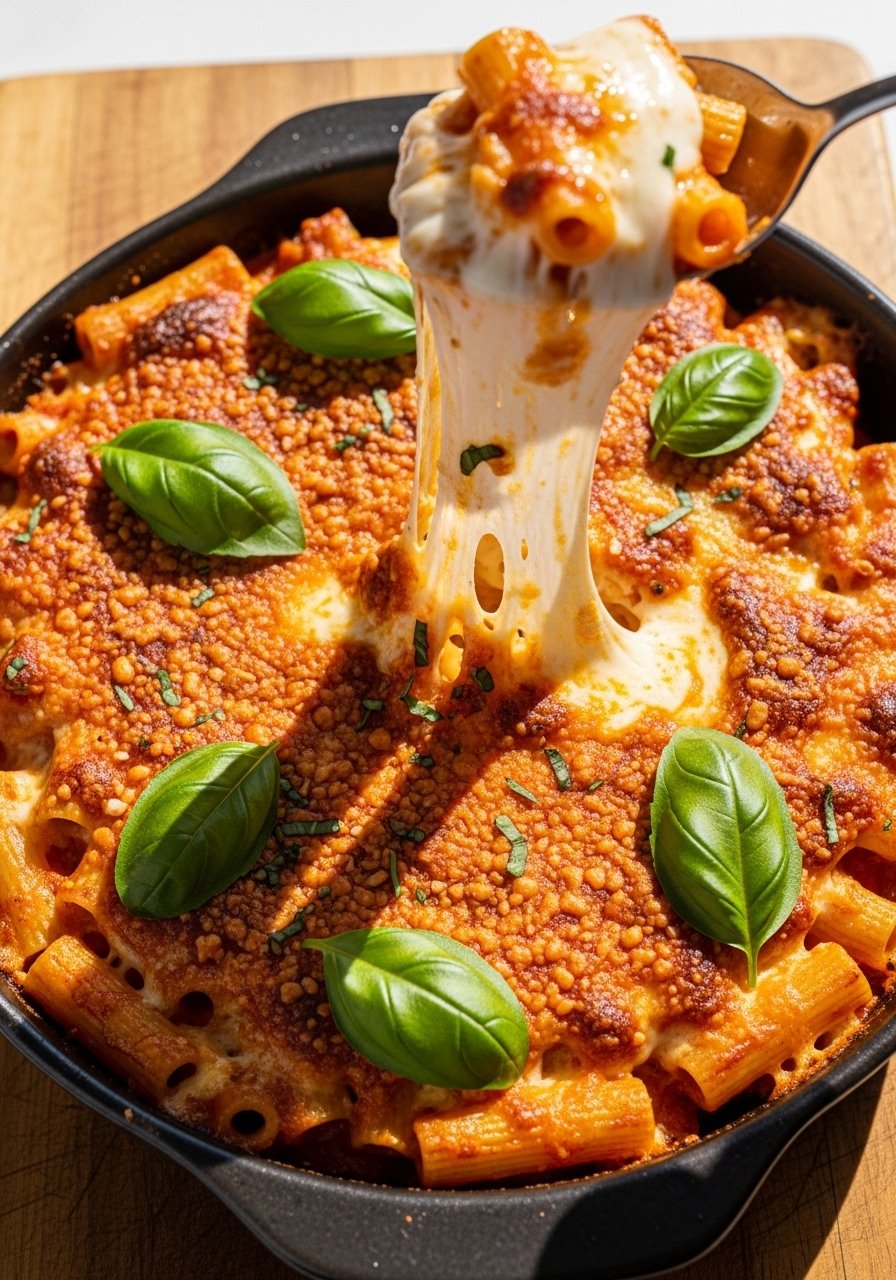 - Bake: Transfer to a 9×13 dish, top with remaining mozzarella and Parmesan. Bake at 375°F for 20–25 minutes until golden.