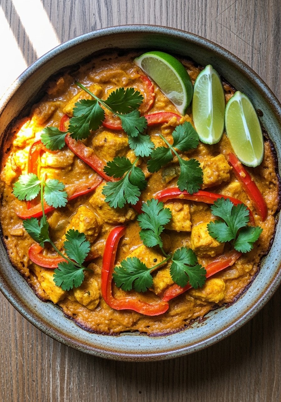 - Bake and garnish: Transfer to a casserole and bake at 350°F for 15 minutes; garnish with cilantro and lime.