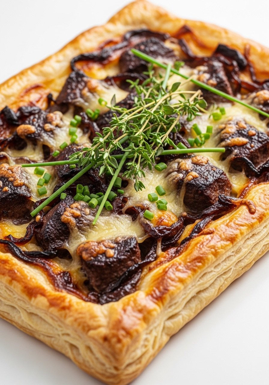 - Bake: Bake at 400°F for 20–25 minutes until pastry is golden and cheese is bubbling. Cool 10 minutes before slicing.