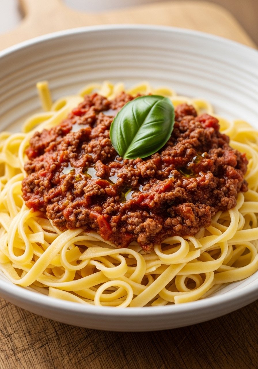 A smooth, savory Bolognese that’s richer than a simple meat sauce. It thickens as it cools—ideal for meal-prep jars and reheats perfectly.
