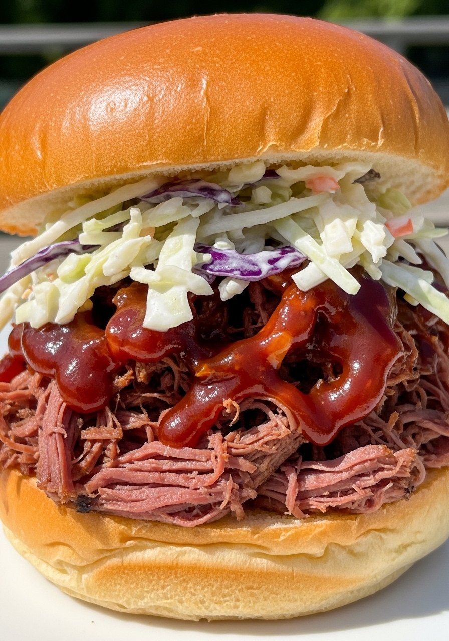 - Slow-cook option: Combine meat, BBQ sauce, broth, and sugar in a slow cooker and cook on low 2–3 hours. (Or simmer in a pot 20 minutes.)