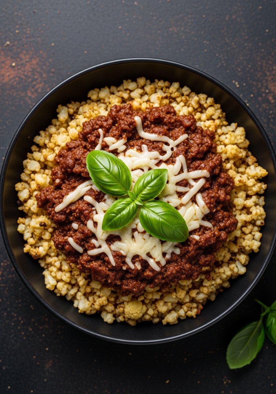 - Assemble bowls: Spoon over cauliflower rice, top with cheese and broil 2–3 minutes if desired.