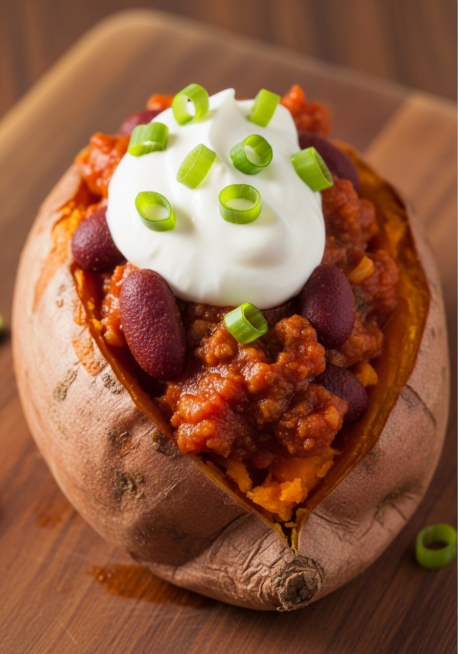 24. Spicy Venison Chili Stuffed Sweet Potatoes