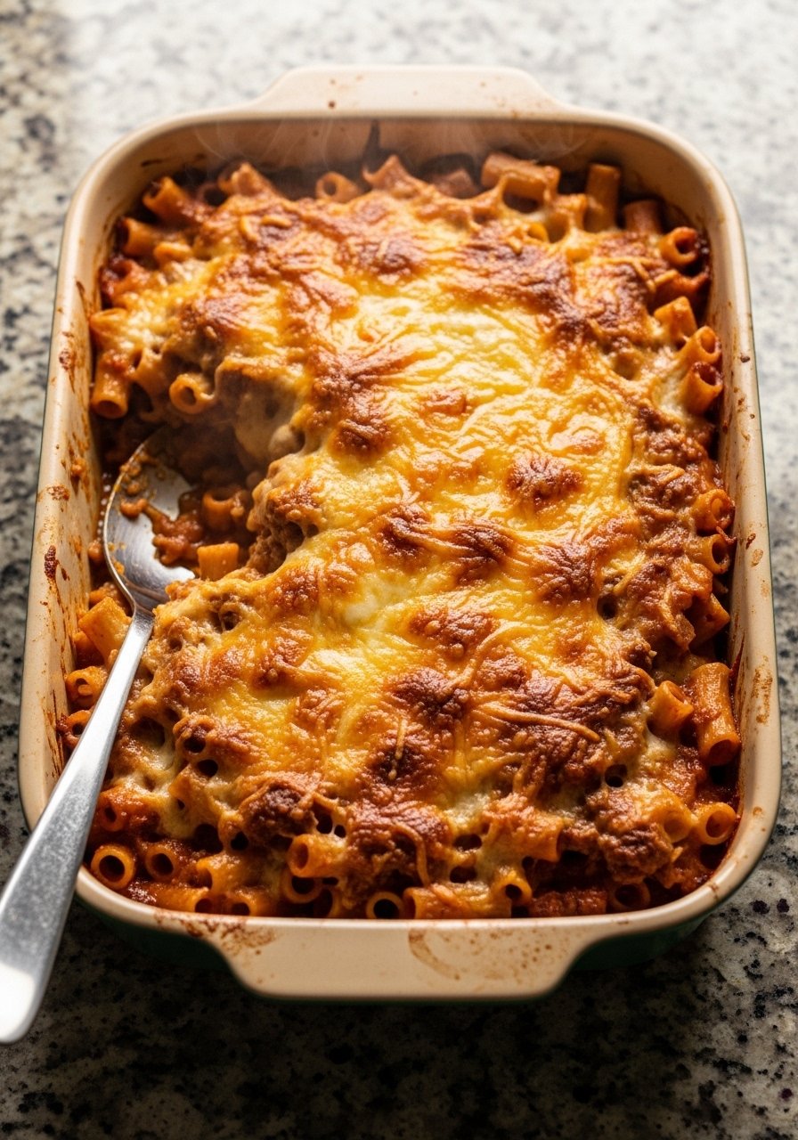 Comforting baked pasta loaded with venison meat sauce and melty cheese—easy to portion and freeze.