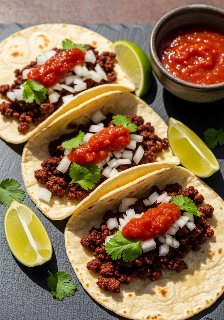 - Serve: Warm tortillas and build tacos with meat, cilantro, onions, and lime.