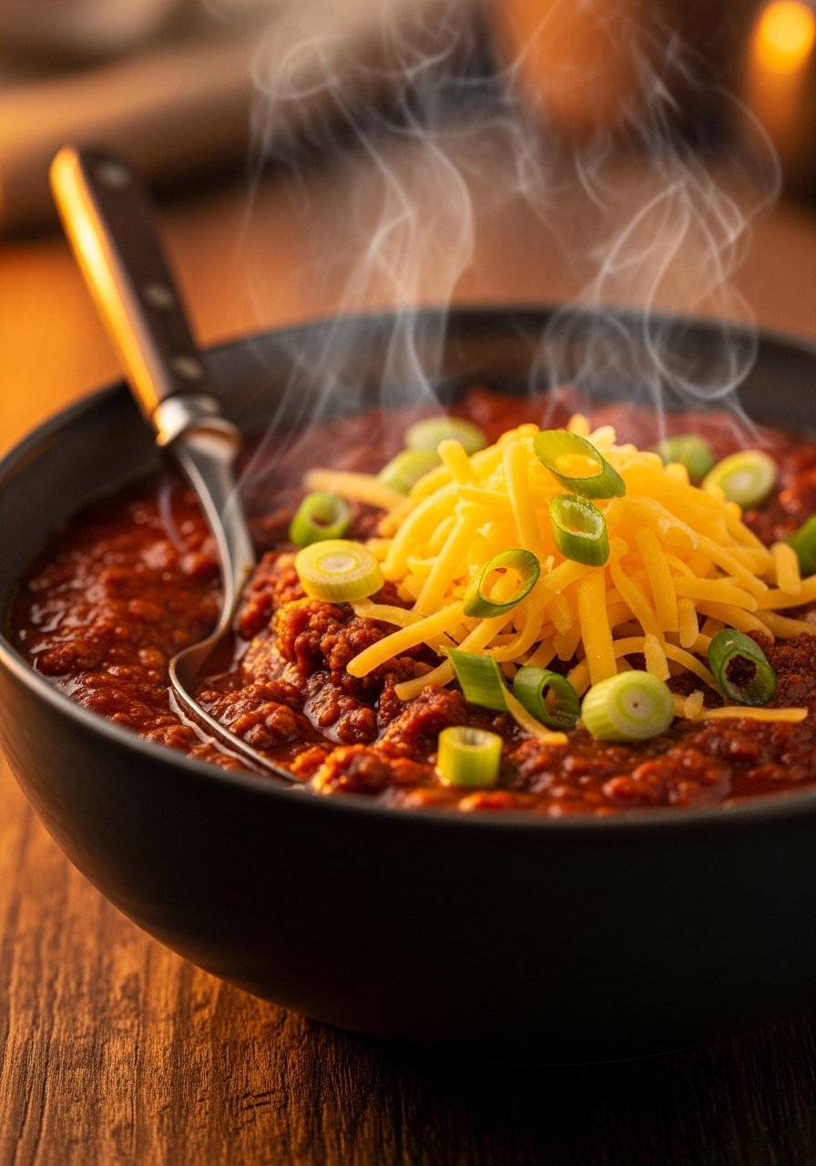 Thick, comforting chili with deep tomato and spice flavors. This hearty pot simmers to develop rich depth. Serve with cornbread or over rice.