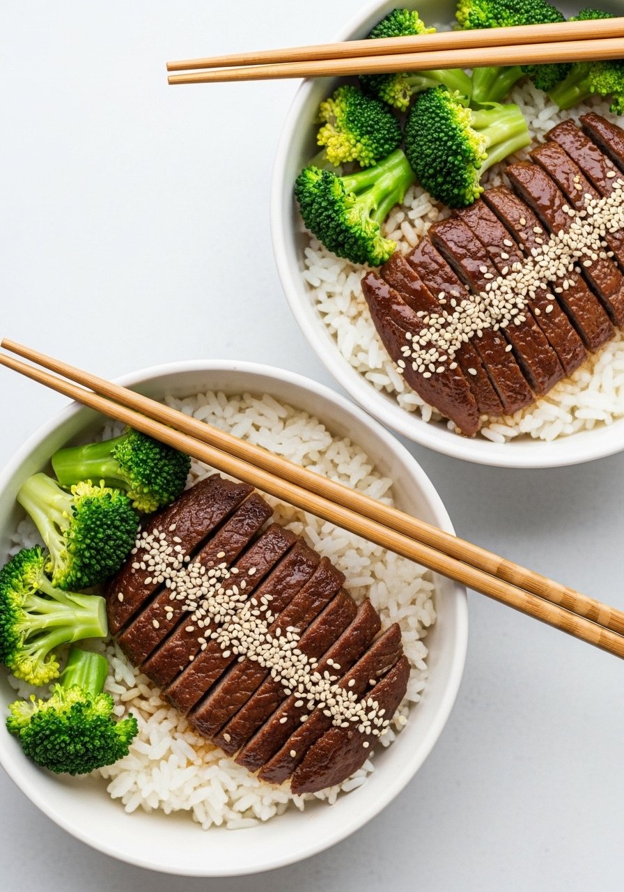 - Steamed broccoli and sesame seeds for serving