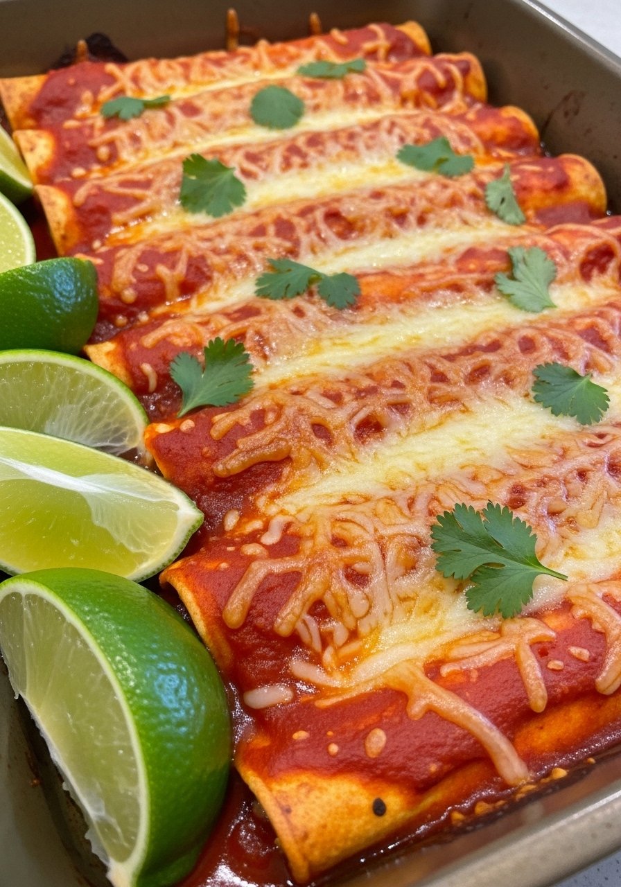 Soft tortillas filled with spiced deer and smothered in enchilada sauce and cheese. A satisfying bake that feeds a family.