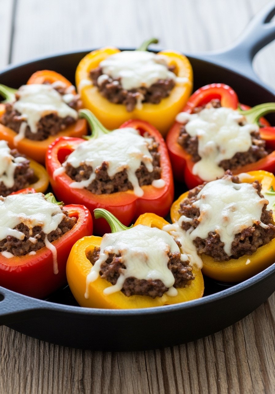 - Cover and finish: Sprinkle with cheese, cover skillet, and cook 6–8 minutes over medium-low until peppers are tender and cheese melts.