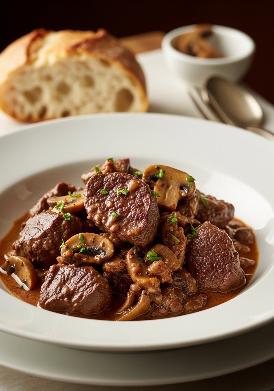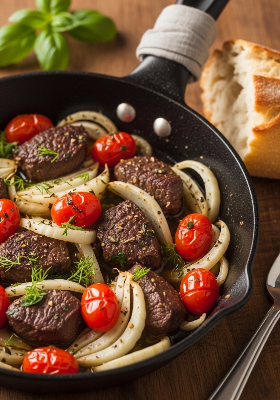 This skillet stroganoff is silky and savory. Mushrooms, sour cream, and tender venison create a classic comfort dish made quickly in one pan. Serve over noodles or mashed potatoes.