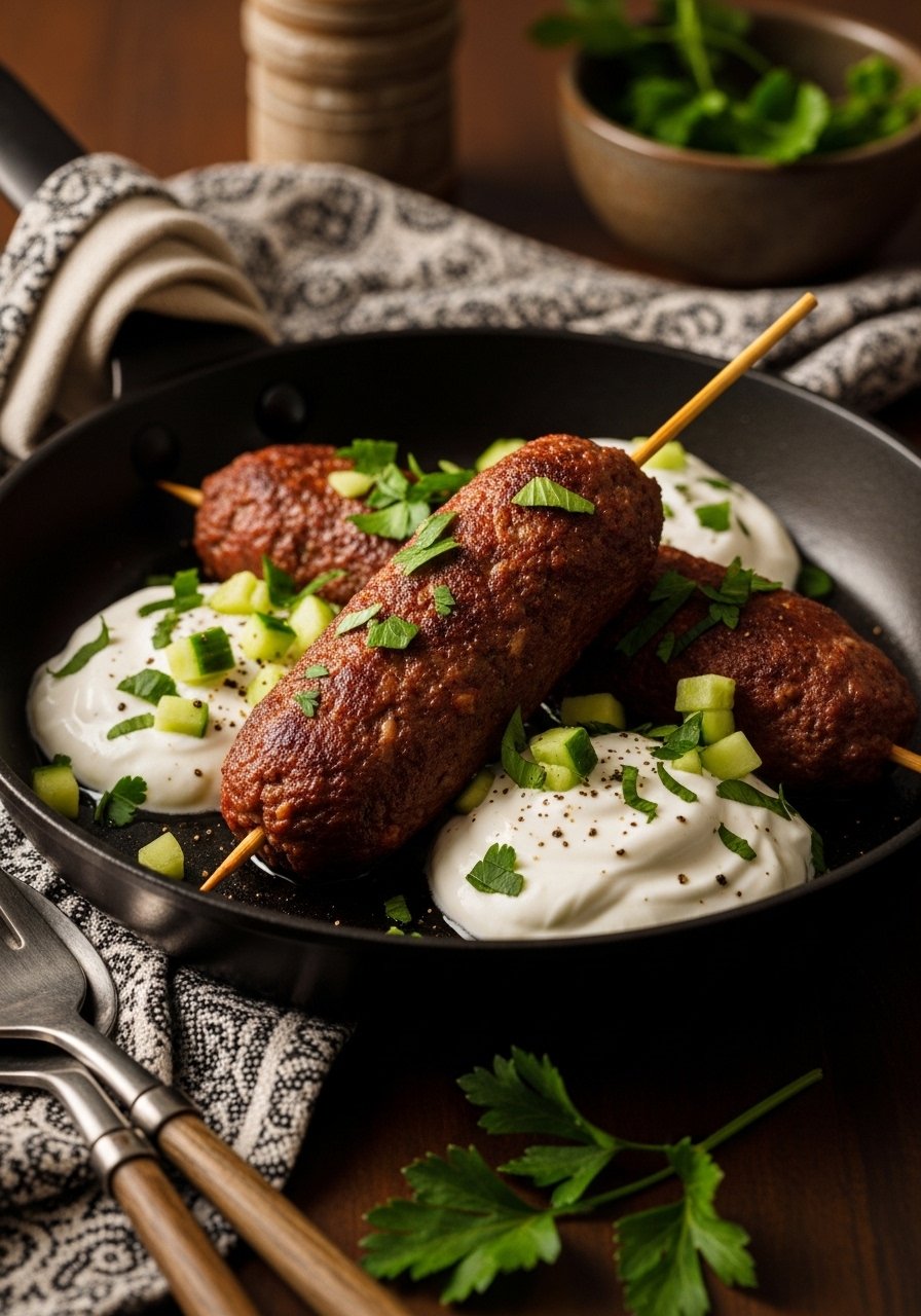 - Cook kofta: Add patties and cook 3–4 minutes per side until browned and cooked through.
