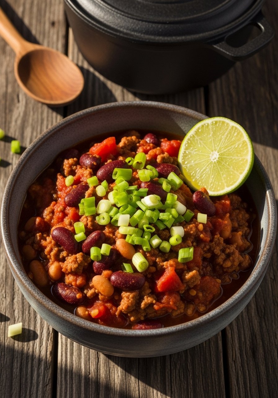 Hearty and warming without excess fat. Canned tomatoes and beans add body while cumin and chili powder give depth. Simmer low and slow for best flavor.