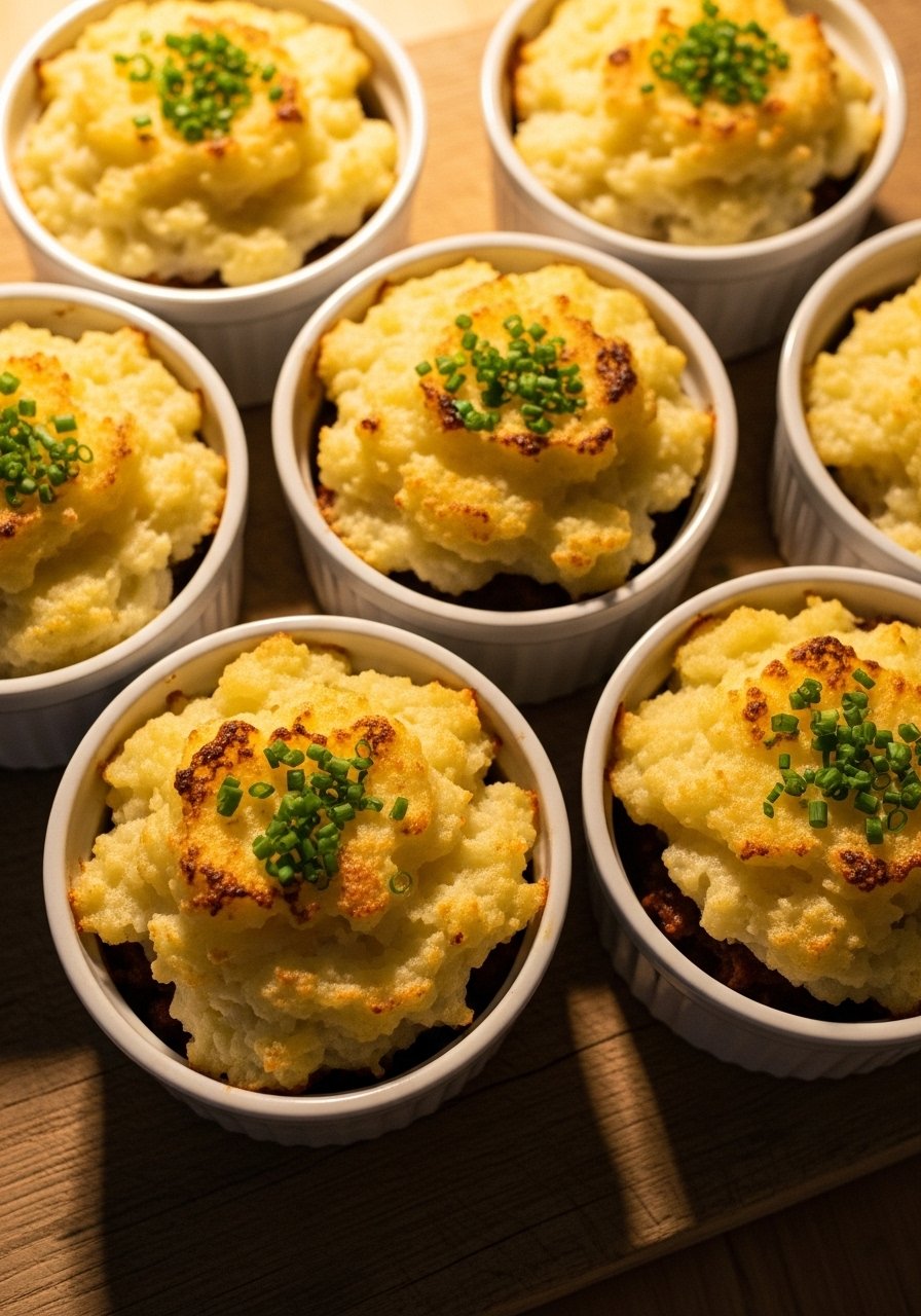 - Assemble & Bake: Spoon filling into a baking dish and spread cauliflower mash on top. Bake 20 minutes until edges bubble and top browns slightly.