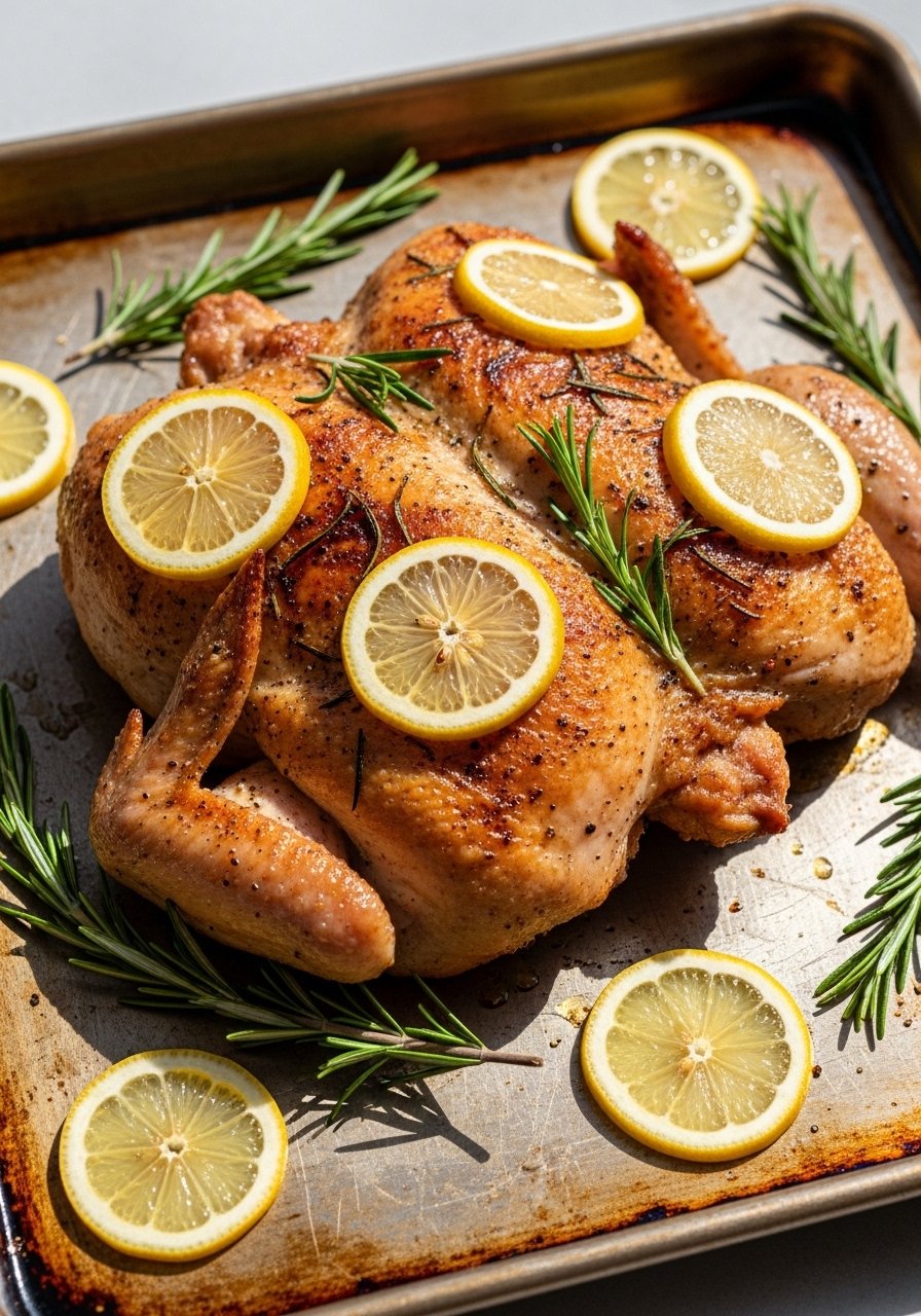 Spatchcocking speeds roasting and gives even browning. Lemon and rosemary add freshness. It’s perfect for fast weeknight dinners and for slicing into salads or grain bowls.