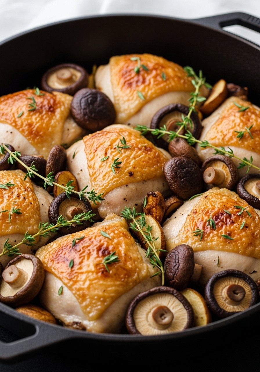 - Roast: Roast 35–40 minutes until chicken reaches 165°F (74°C) and mushrooms are golden.
