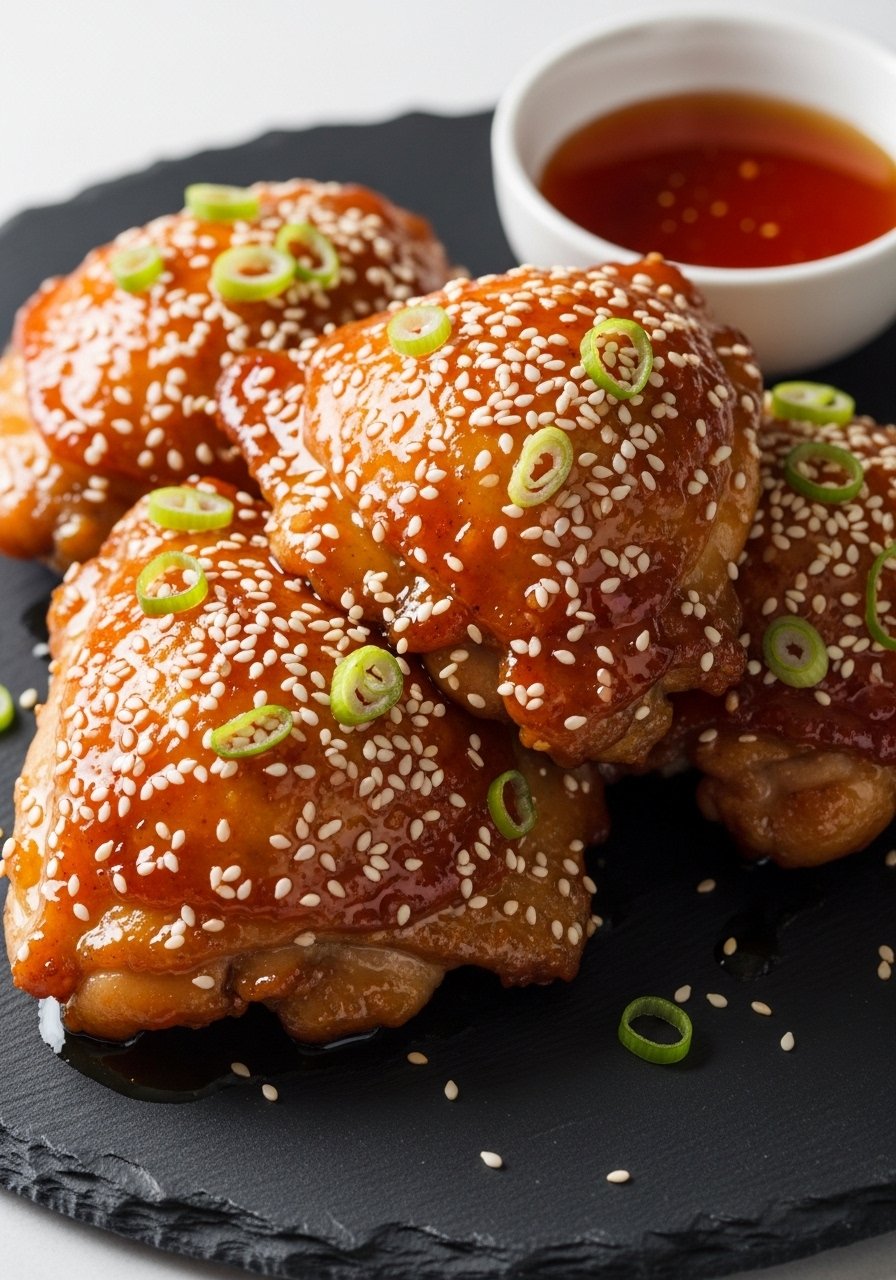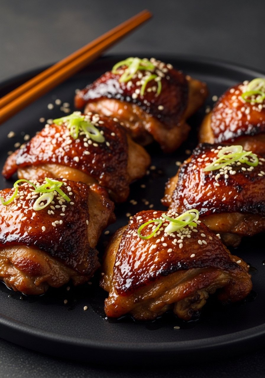 Sticky, sweet, and full of garlic aroma. Bone-in thighs get super-tender and caramelize beautifully under high heat.