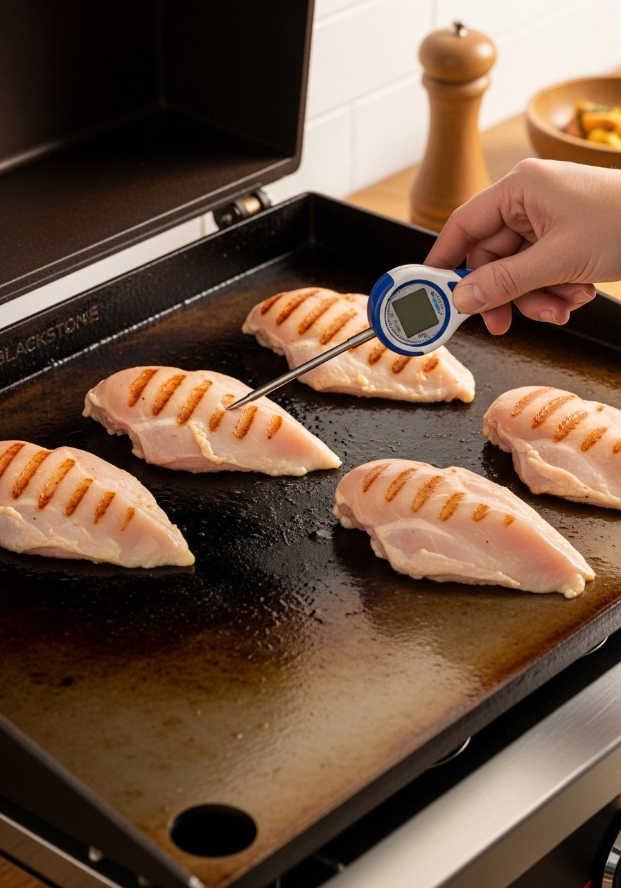 Rest the chicken for 5 minutes after it hits your pull temperature. On a hot griddle cook, this rest is where the texture turns from “tight” to “tender.”
