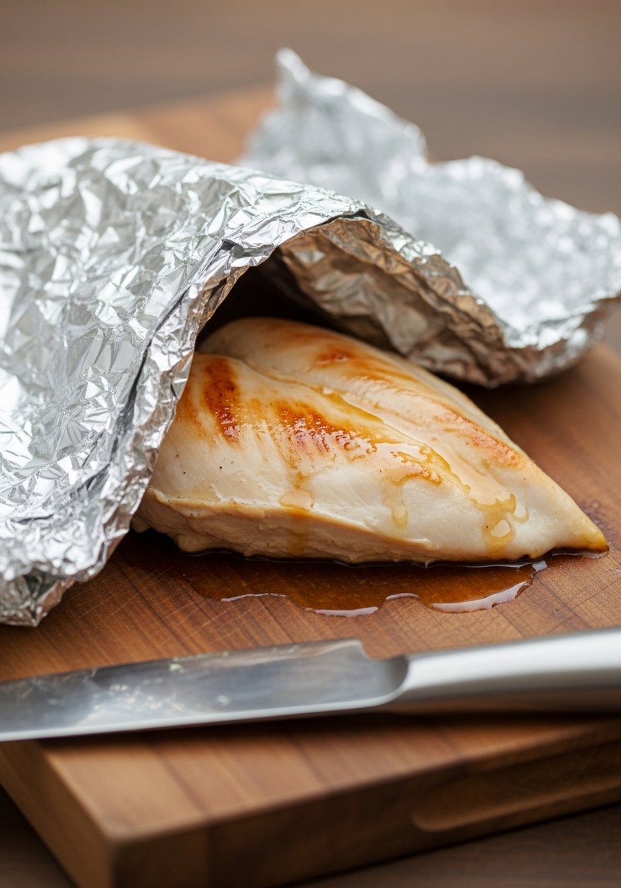 When you slice, cut across the grain. For breasts, that usually means slicing from the narrow end across into strips. A sharp knife prevents shredding and moisture loss—something like a Victorinox Chef’s Knife makes clean slicing much easier.