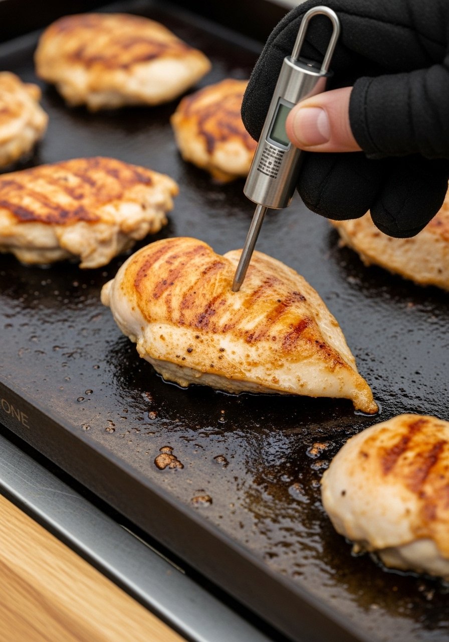 Third, don’t rely on time alone. Thickness varies. A simple thermometer prevents both dryness (overcooking) and safety worries (undercooking). If you’re still learning, keep one like the ThermoPro Instant Read Meat Thermometer next to your griddle every time.