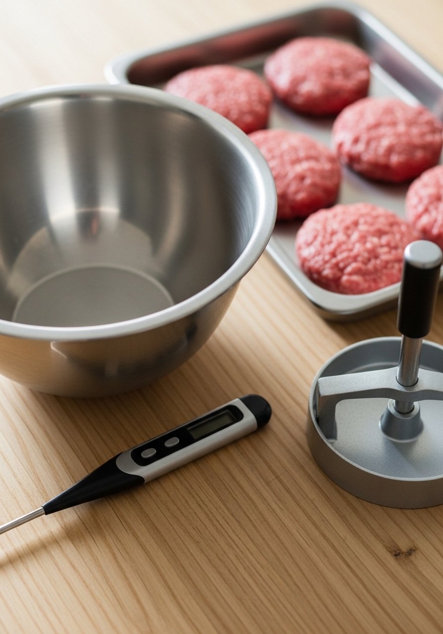 - Instant-read thermometer: confirms safe internal temp without cutting the patty. (Instant-Read Thermometer)