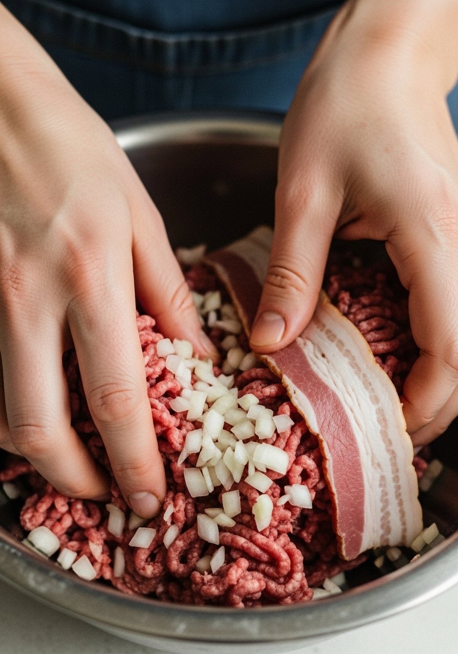 When you cook the meat, add a neutral pork fat, bacon, or a small amount of oil (around 15–30% additional fat by weight) and strong aromatics—onion, garlic, bay leaf, or a splash of Worcestershire. Cook until well-browned.