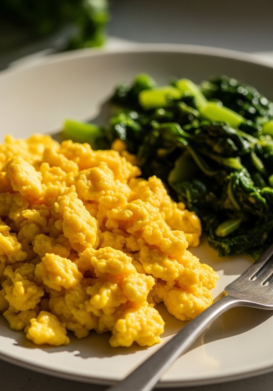 Earthy mushrooms, iron-rich spinach, and eggs provide protein and vitamin D support—simple, savory, and filling.