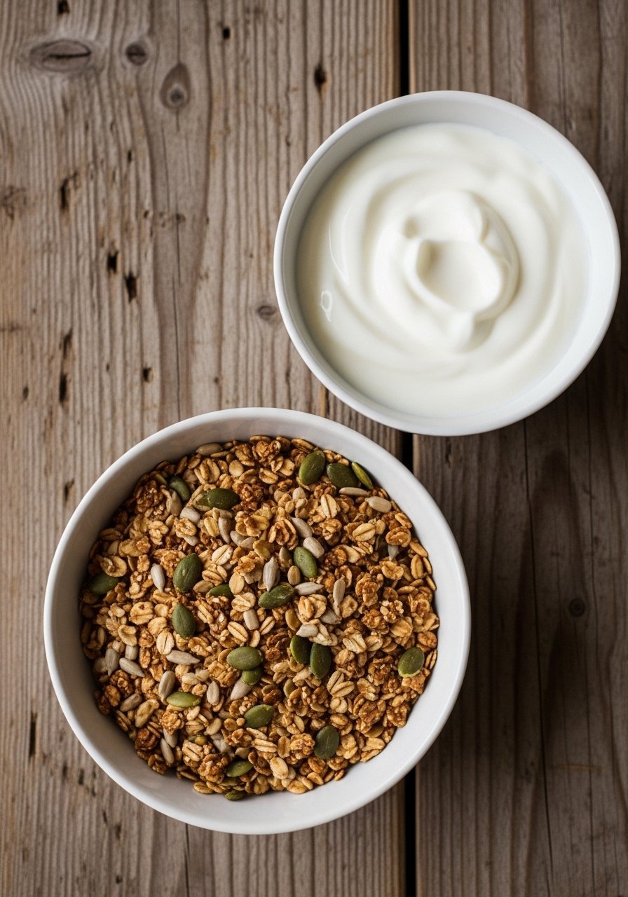 - Bake granola: Spread on sheet and bake 18–22 minutes, stirring halfway, until golden and fragrant. Cool completely.