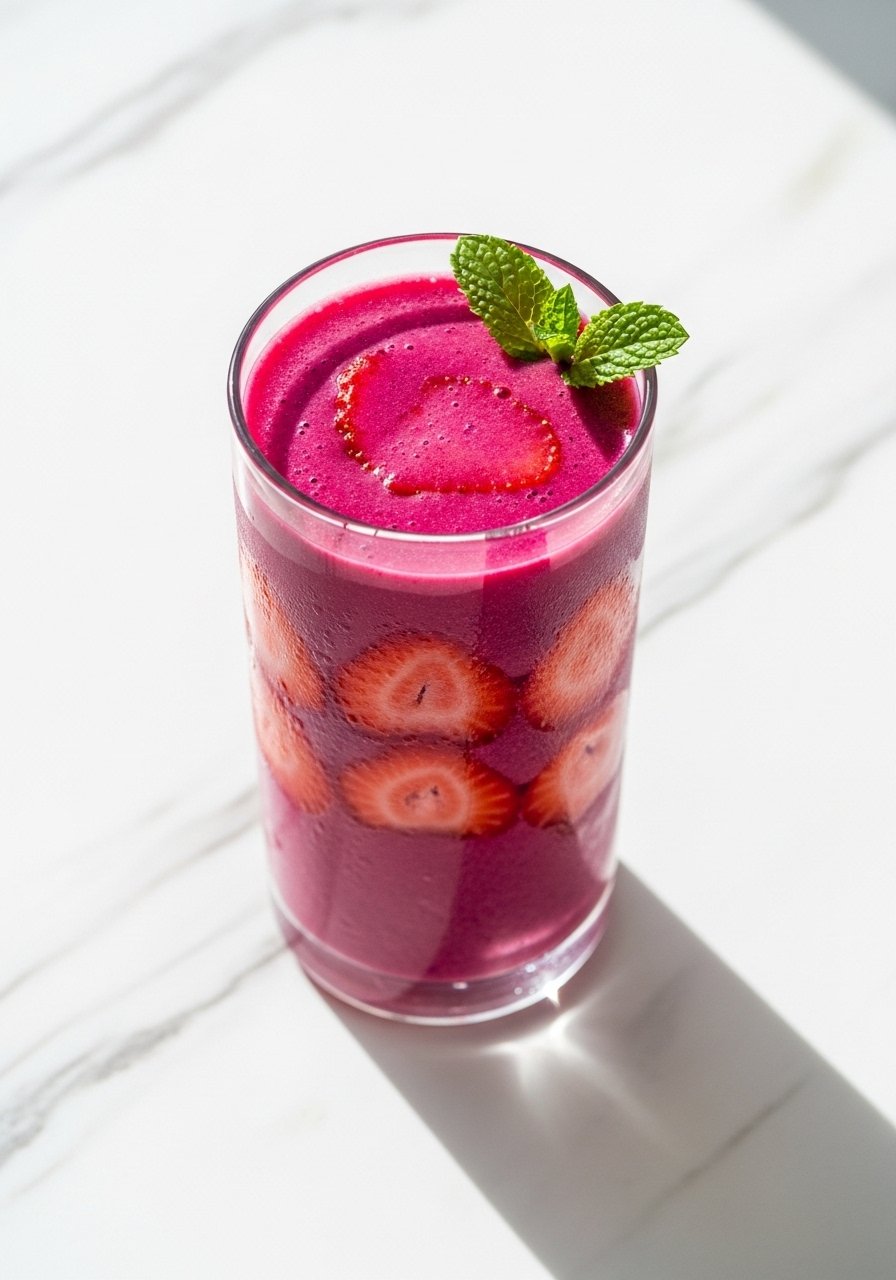 - Blend: Add all ingredients to blender and blend 45–60 seconds until silky.