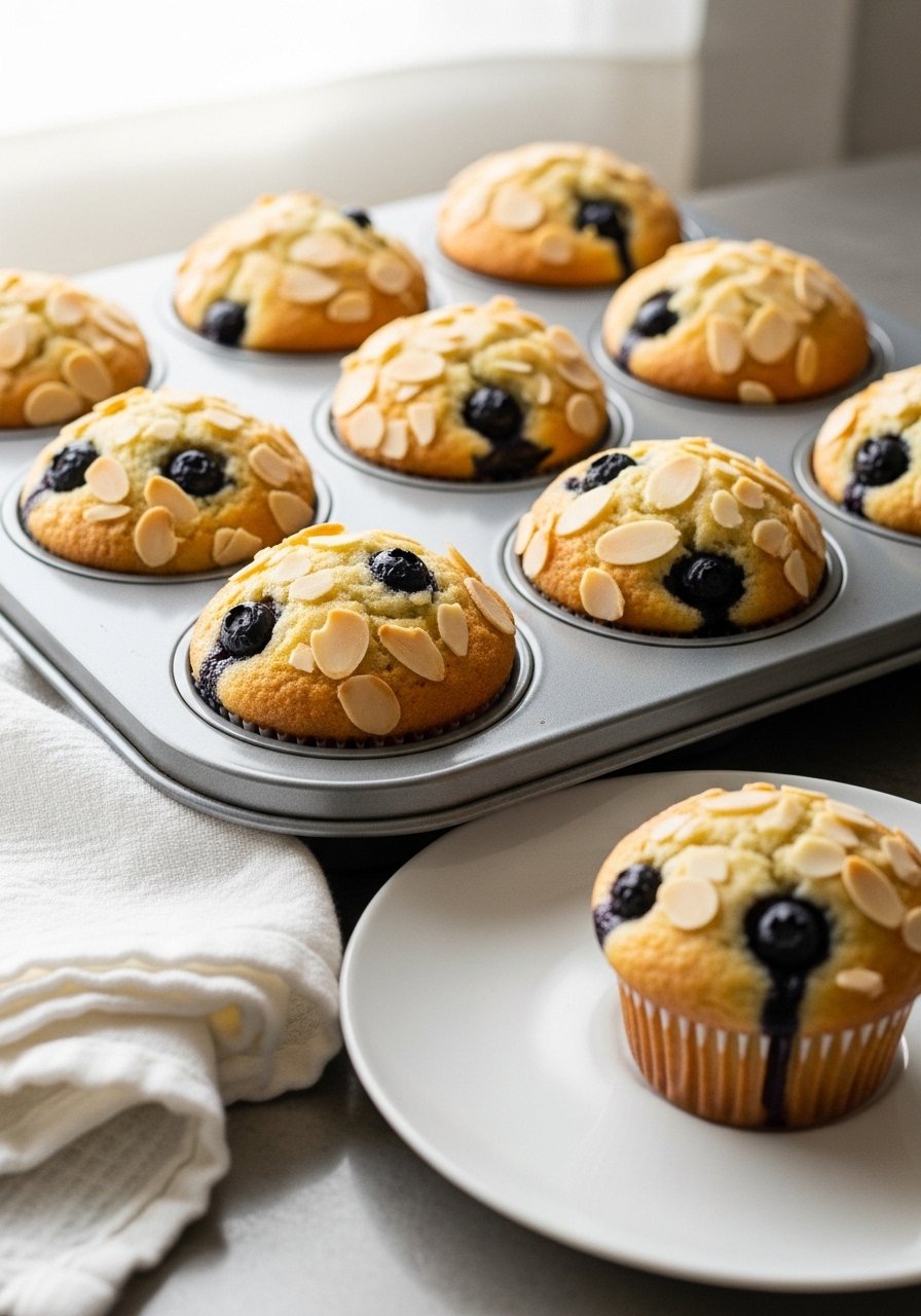 Portable muffins with blueberries and almonds for antioxidants and vitamin E. Great for batch-making and quick breakfasts.