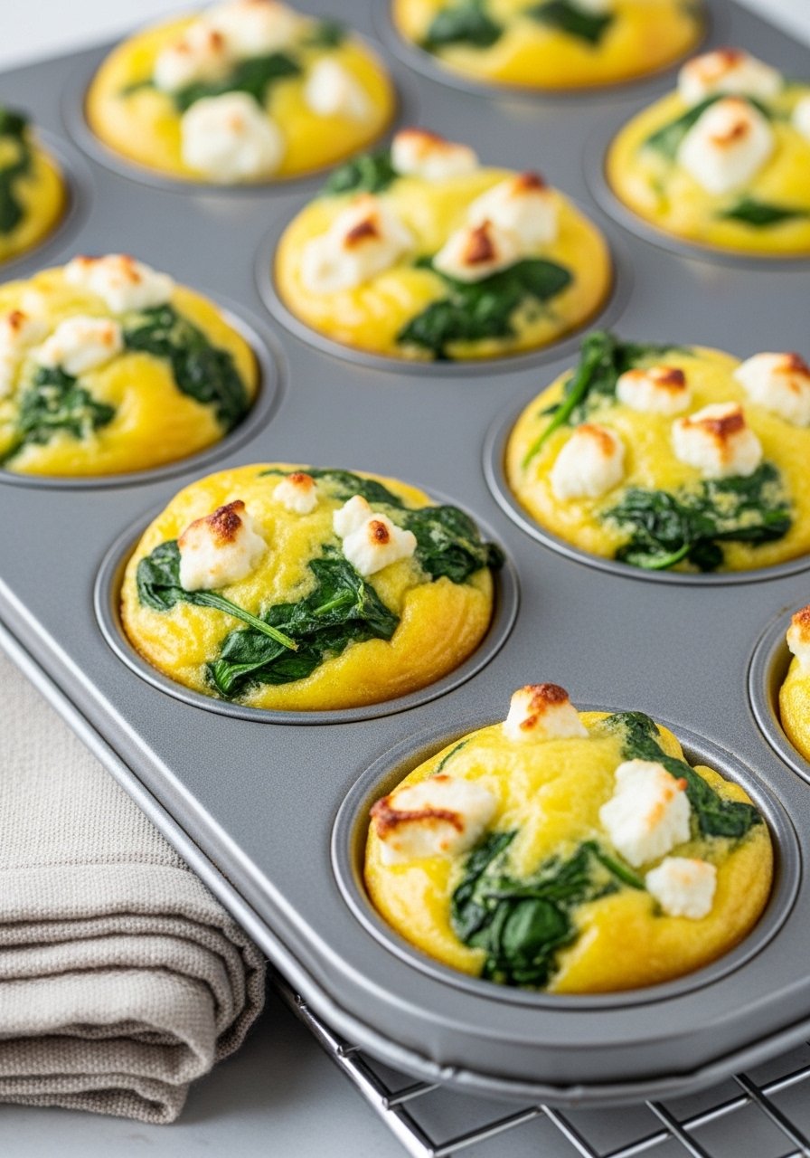 Make-ahead egg muffins that are protein-rich and easy to reheat. Spinach and feta add iron and vitamin K.