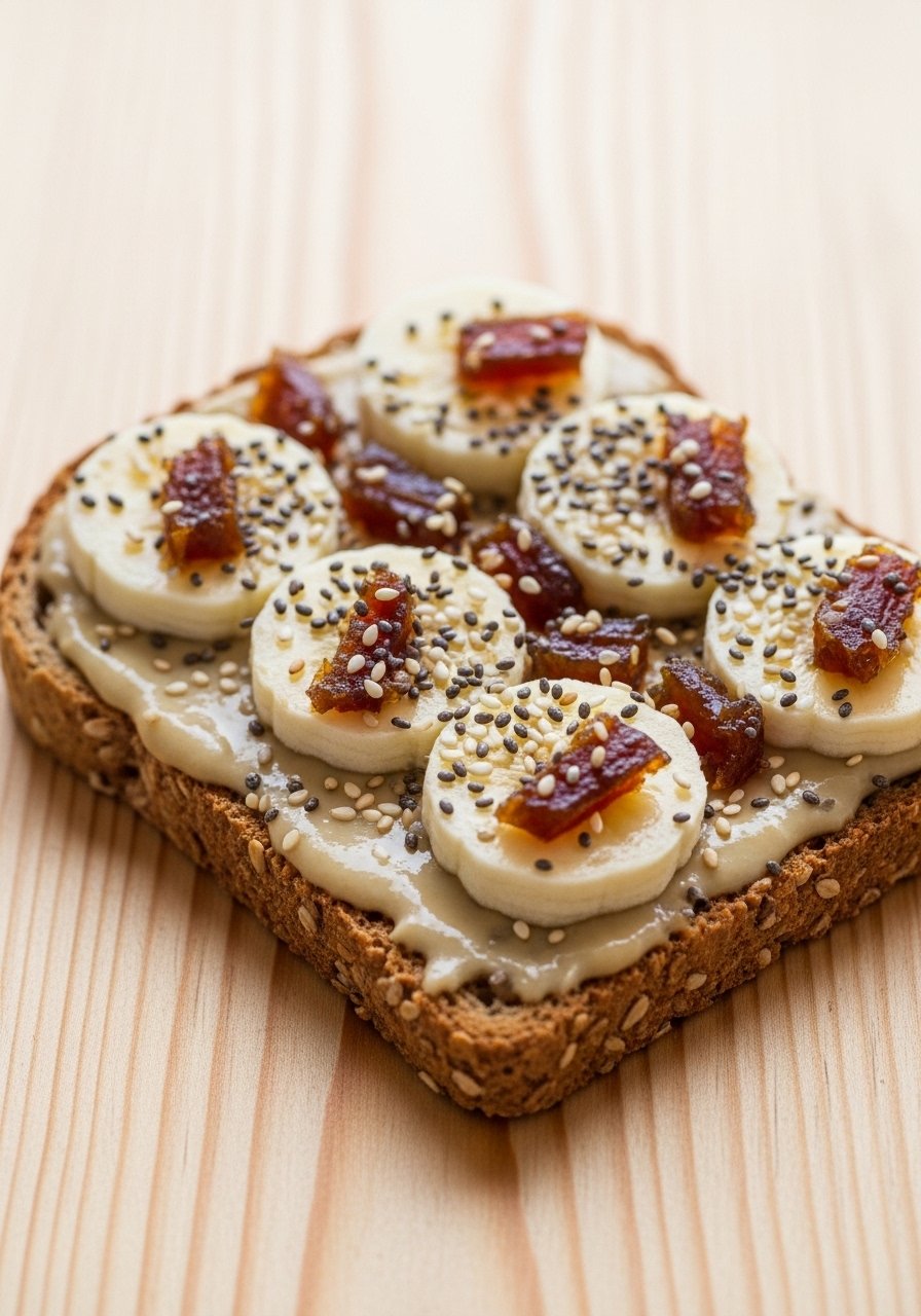 24. Tahini-Date Energy Toast With Banana And Seeds