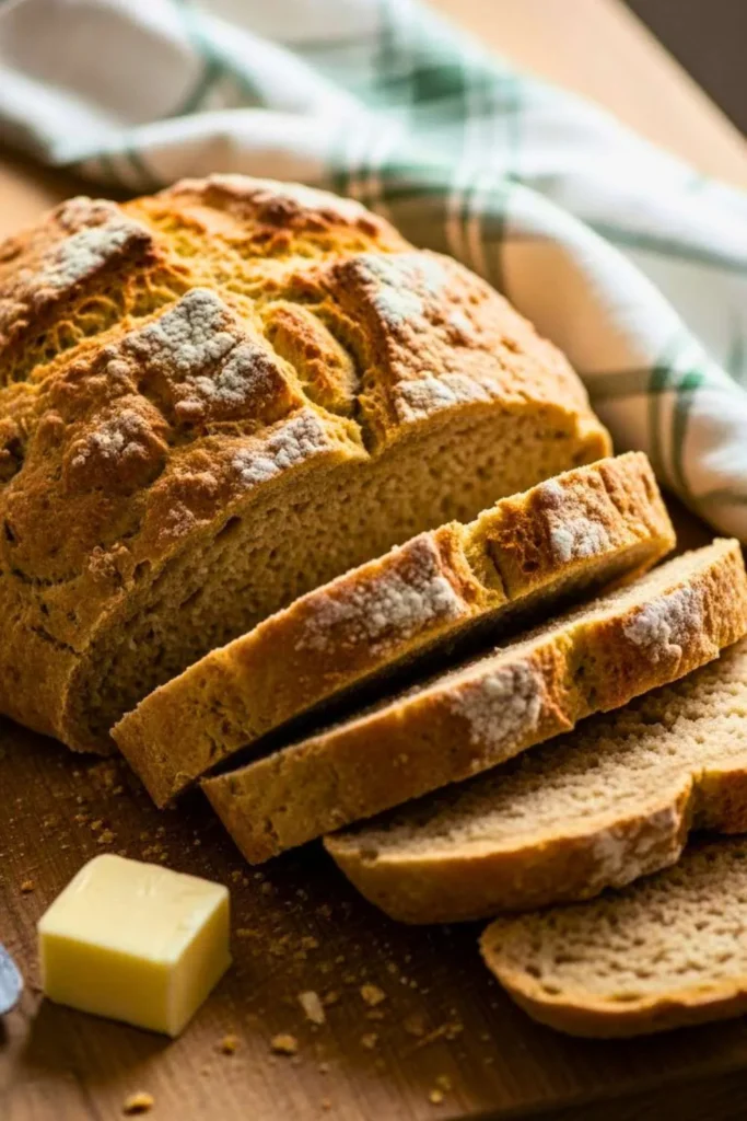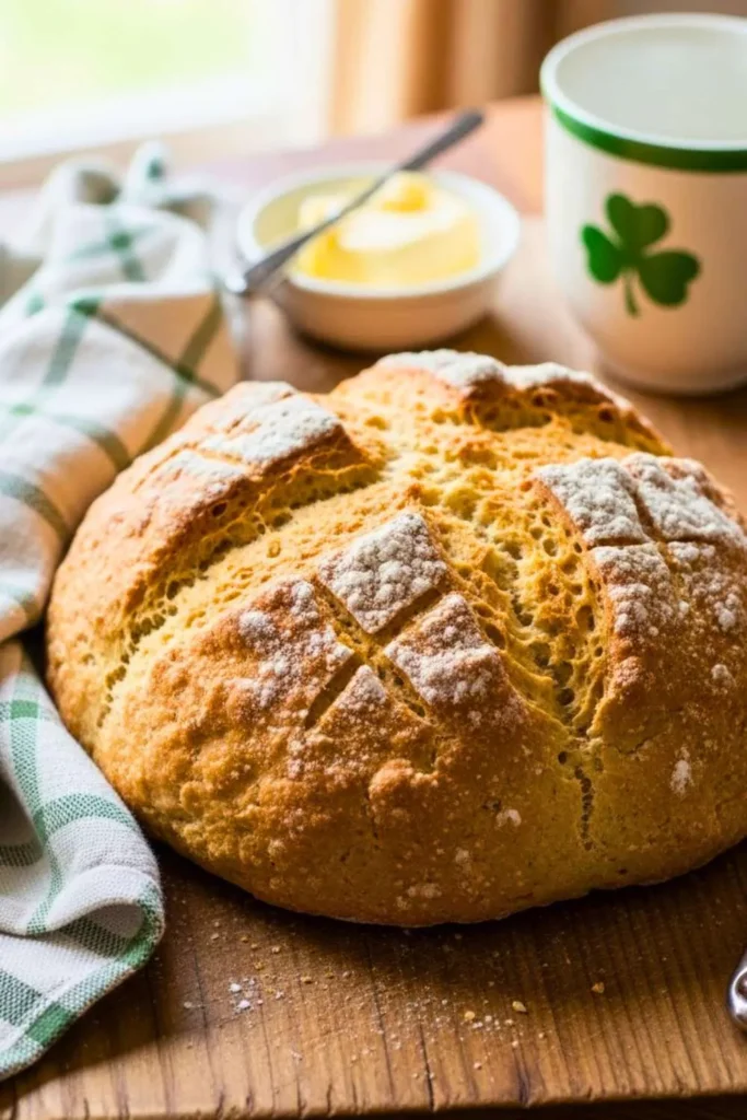 This traditional Irish soda bread has a golden crust, soft interior, and a mild, slightly tangy taste from the buttermilk.