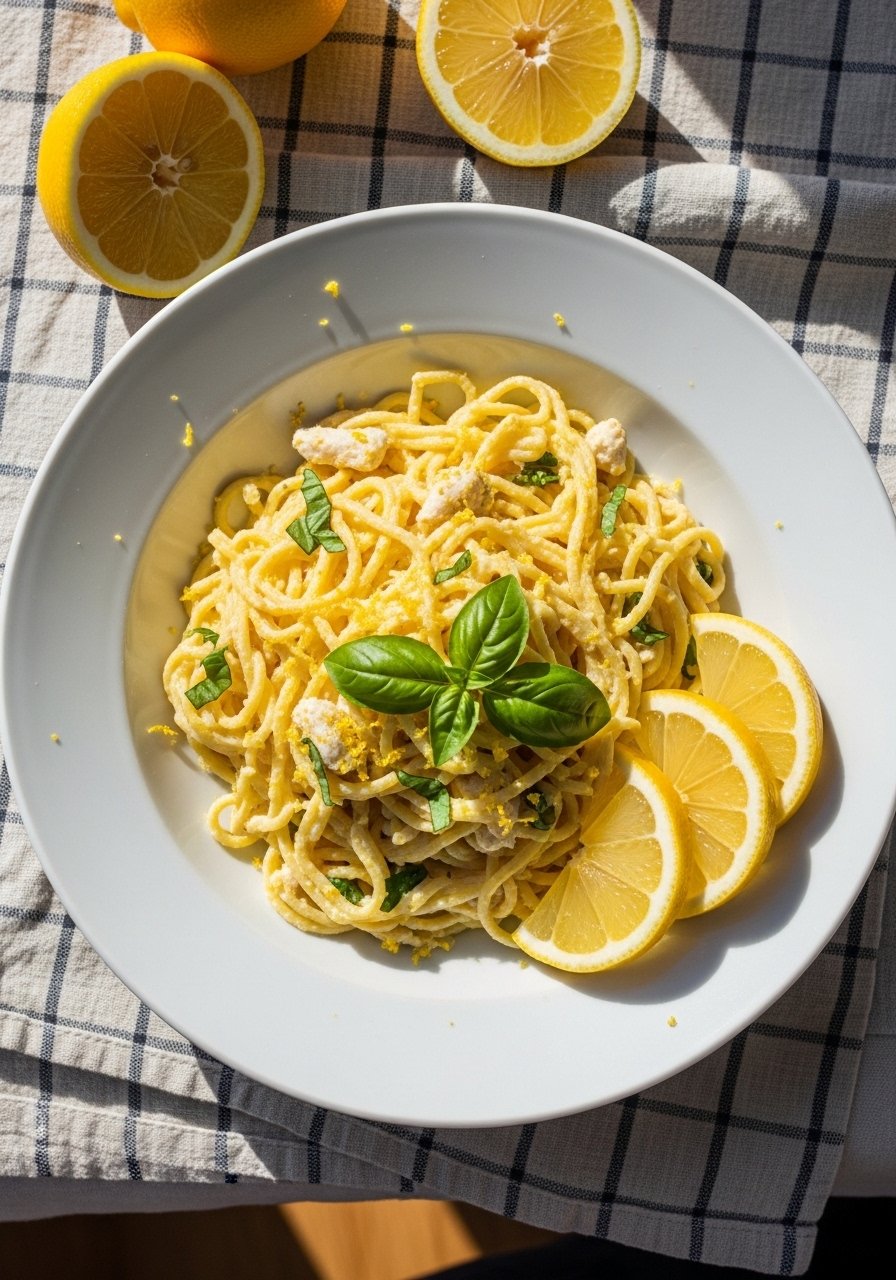 30. Creamy Basil-Lemon Chicken Pasta (Light & Herbaceous)
