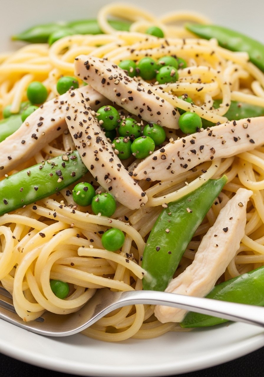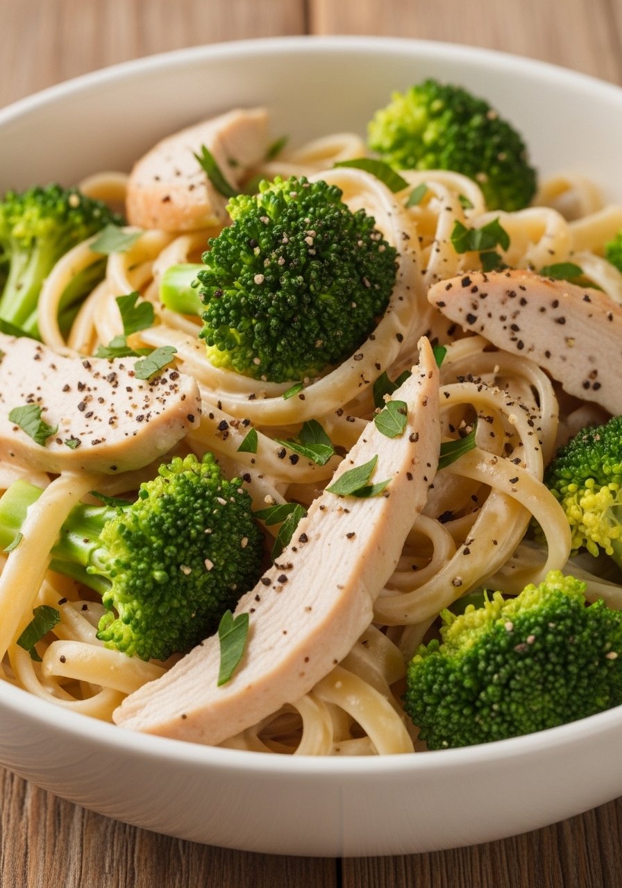 - Toss cooked pasta in sauce, add chicken slices, and fold to combine. Heat through 1–2 minutes and taste for seasoning.
