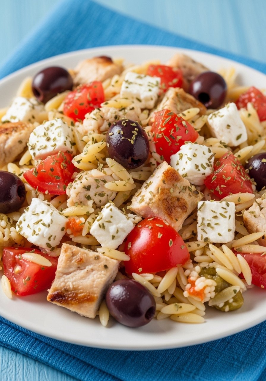 Bright Mediterranean flavors—olives, feta, and oregano—give salt and tang to a creamy base. This is an excellent recipe for pantry staples and pairs well with light sides.