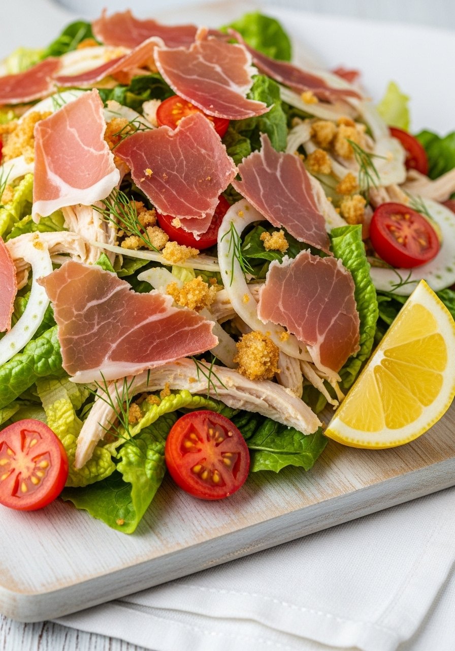 This Italian twist on a Cobb puts classic toppings into an Italian chicken salad format, using an herb-forward vinaigrette. It’s diner-filling and great for sharing. For crisp bacon bits, I use an air fryer for quick, even results.