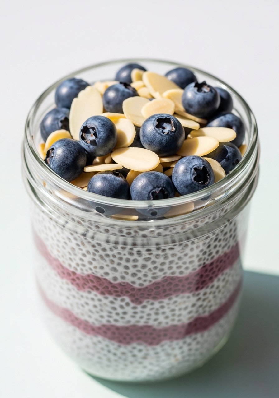 - Mix Ingredients: Whisk chia seeds, milk, vanilla, and sweetener in a jar.