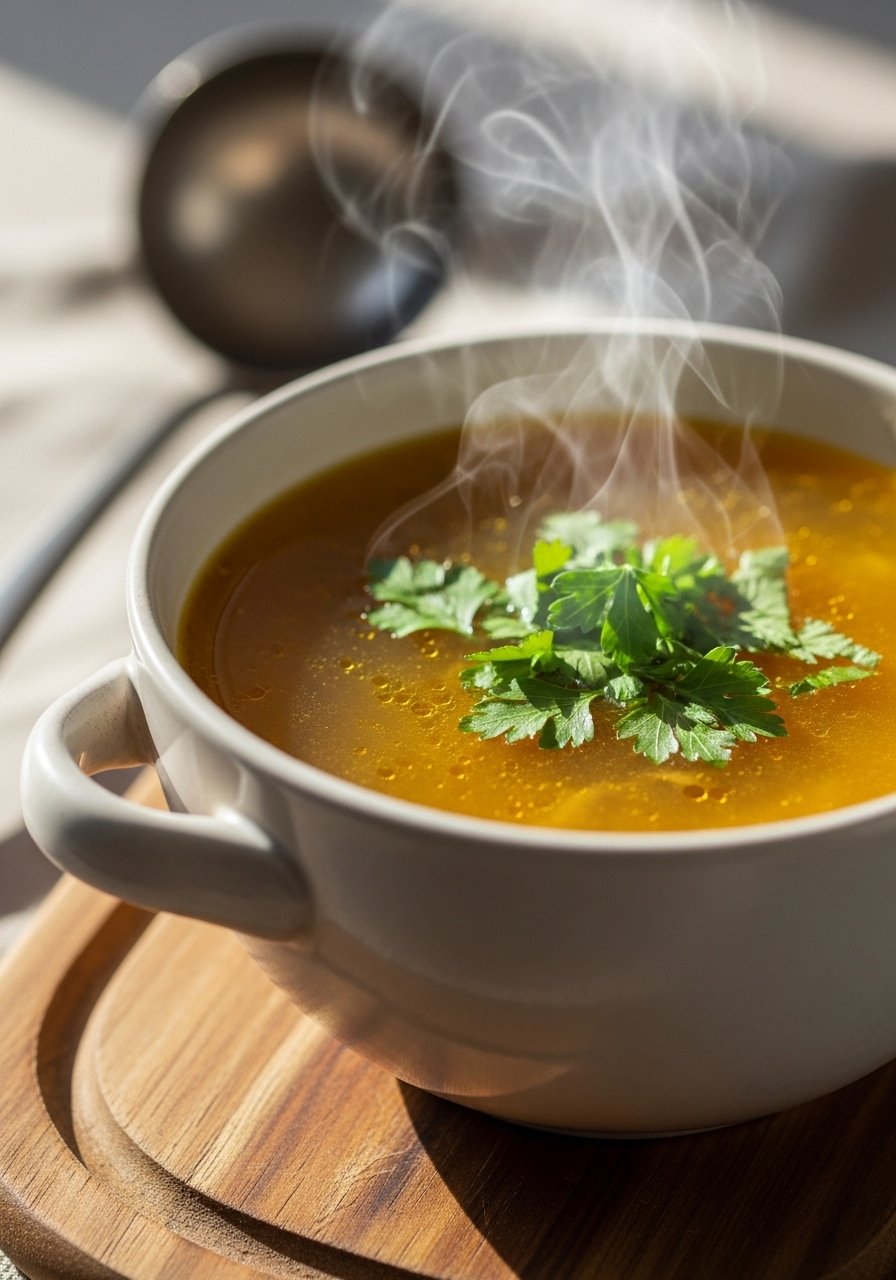 A clear, gelatin-rich broth that's savory and soothing. It’s mild on the stomach, rich in collagen, and perfect as a warm starter or base for other recipes.