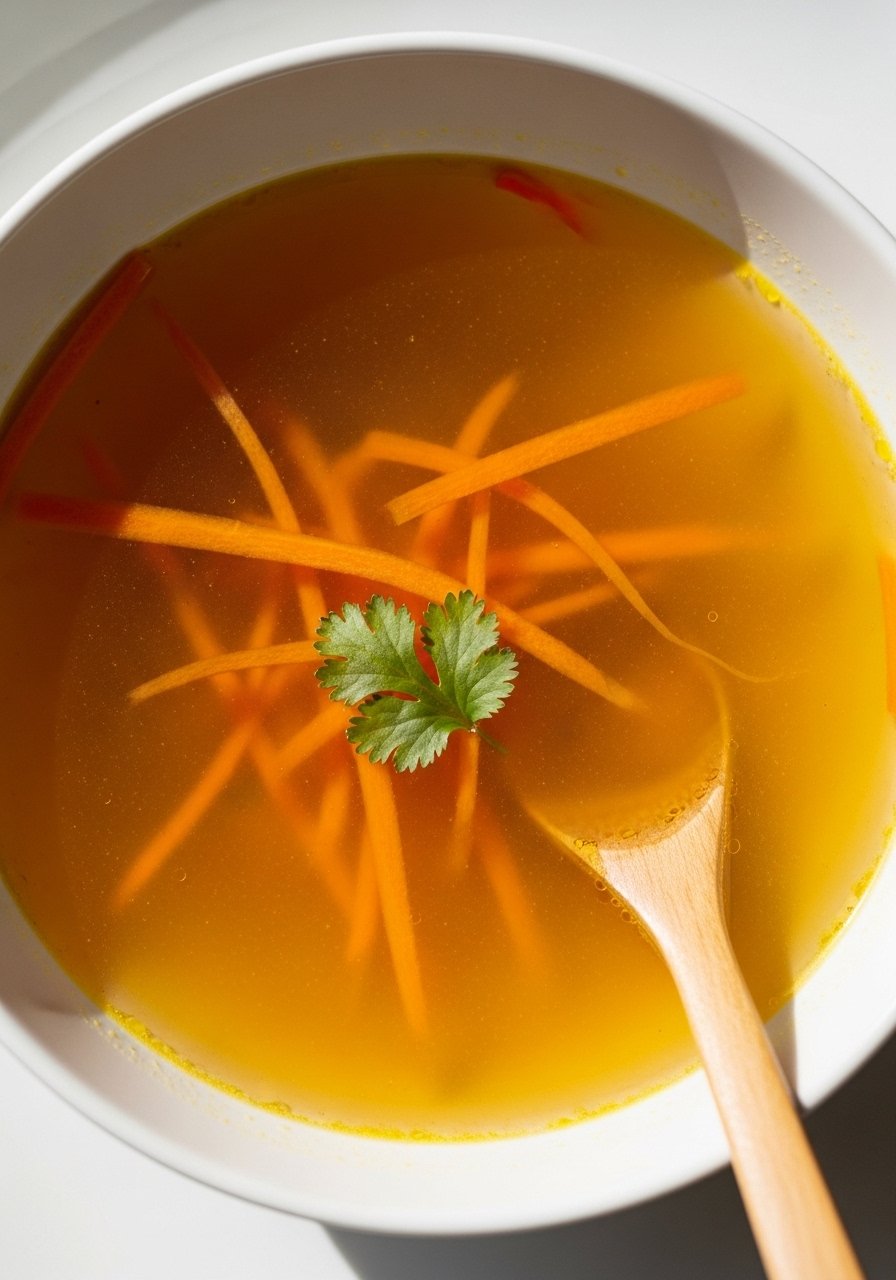 A fragrant, anti-inflammatory broth that’s lighter than bone broth but full of ginger and turmeric warmth. Great for sipping or as a base for gentle soups.